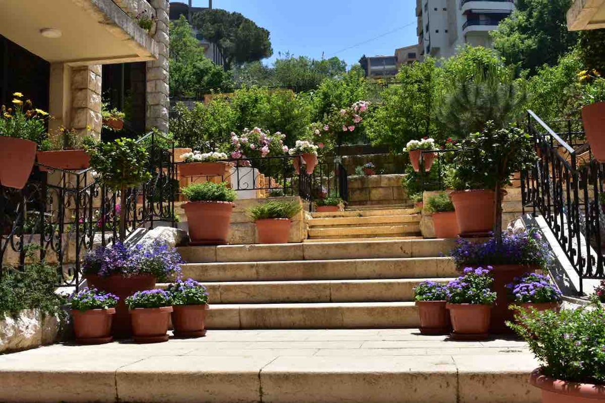 A unique 5 star 3 bedroom luxury apartment; 24/7 Electricity , Central Heating and Air conditioning , WiFi and Concierge Service Relax with the whole family at this Modern luxury peaceful place in the center of Brummana with unparalleled views overlooking the Mediterranean Sea, the valley, Beirut and the Mountains. 5 minutes walking from restaurants and nightlife.