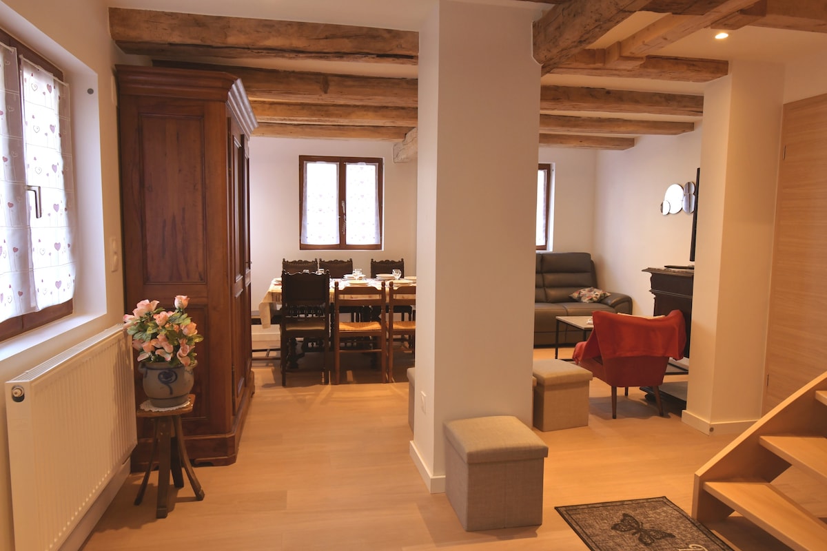 Appartement spacieux tout confort, entièrement rénové au centre ville de Gerardmer. Situé à proximité de tous les commerces, à 5 min des pistes de ski et du lac, vous pourrez en profiter pour de nombreuses activités : randonnée, vélo, ski, paddle, mais aussi du shopping en famille, entre amis ou à titre professionnel. Séjour au calme garanti ! Équipement complet et neuf