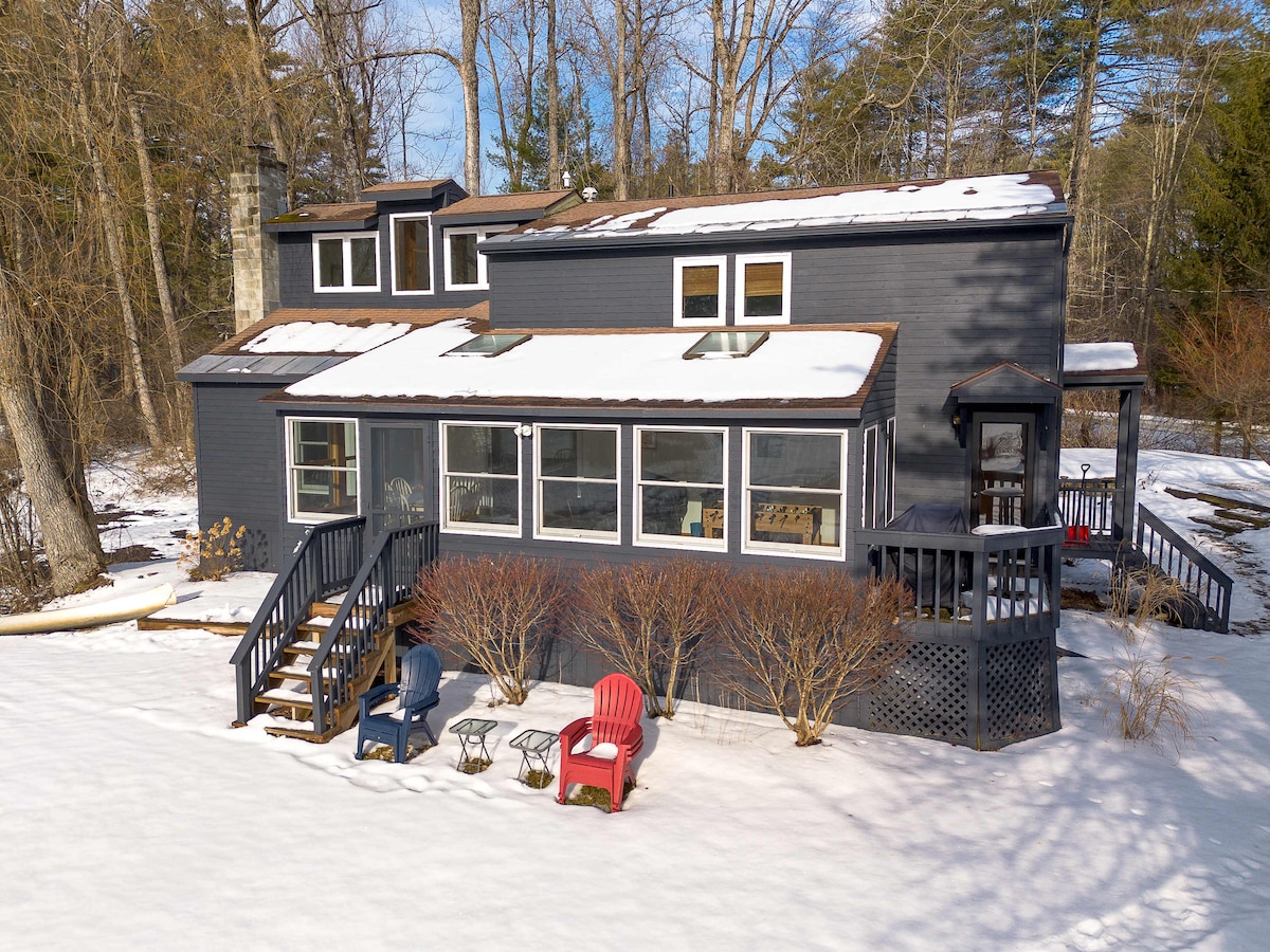 아늑한 산속 휴양지로 떠나보세요. 겨울 휴가를 즐기기에 완벽한 곳입니다! 지미니 피크까지 15분 거리에 있으며 탱글우드, MASS MoCA 및 클라크와 가깝습니다. 스키를 즐기고 별빛 아래 나무로 난로가 켜진 온수 욕조에서 밤을 즐겨보세요. 브리오 야외 화덕 옆이나 바닥 난방이 되는 실내에서 따뜻하게 휴식을 취하고, 축제 음식을 요리하고, 프라이버시를 누리세요. 전기차 충전 시설과 평화로운 업무 공간을 갖춘 이곳은 휴가를 보내고 겨울 시즌을 즐기기에 완벽한 장소입니다.