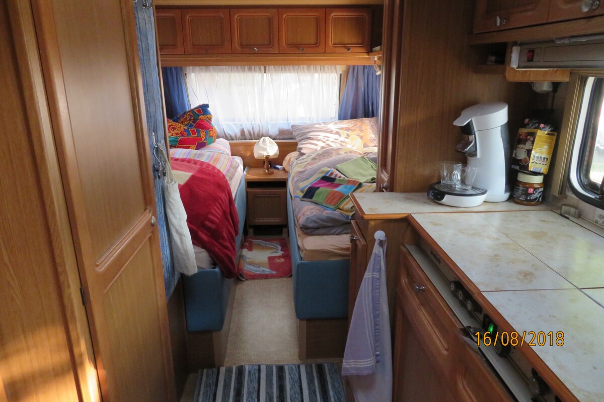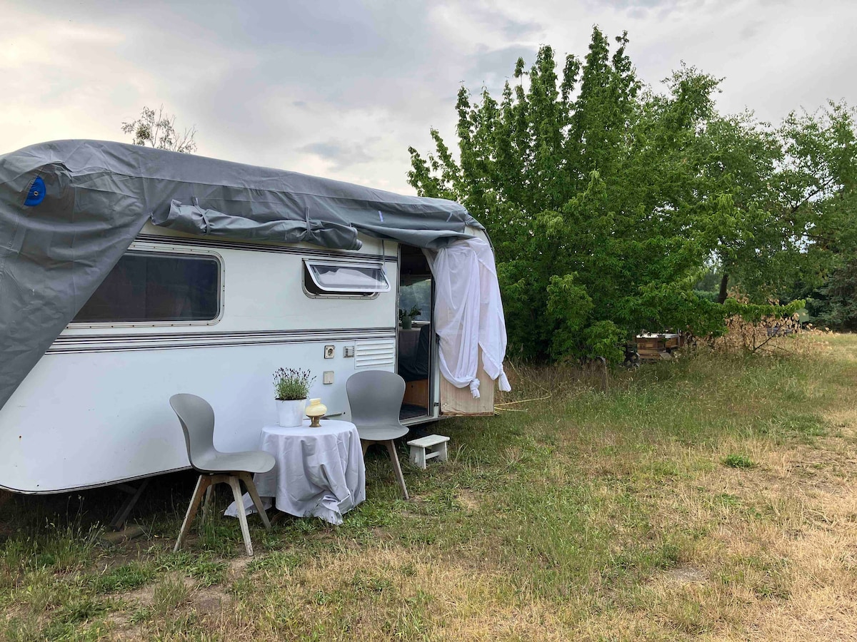 작지만 고급스러운 새로운 가구가 구비된 복고풍 캐러밴으로 2명이 잘 수 있습니다. 이 캠핑카는 호수에서 몇 걸음 거리에 있습니다. 자연으로 둘러싸인 이 낭만적인 숙소를 즐겨보세요. 자전거는 현장에서 대여할 수 있으며, 하루 0.5유로입니다. 여름 주방은 몇 걸음 거리에 있으며 바베큐와 스토브, 팬과 냄비를 이용하실 수 있습니다.