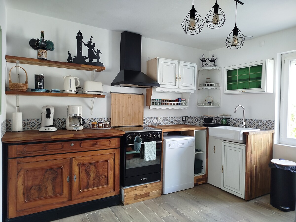최근에 개조된 농가 주택은 바닷가에 속합니다. 주인 (화가 및 건축가) 이 멋지게 꾸몄습니다. 휴가에 필요한 모든 시설이 완비되어 있습니다. 욕실이 딸린 편안한 침실, 바베큐가 가능한 서향 테라스, 세탁기, 세탁기. 햇살이 잘 드는 넓은 거실. Télévision, 인터넷, 음악 시스템. 바다는 3m 거리에 있습니다. 숙소에서 차로 4mns 거리에 시장과 슈퍼마켓이 있는 매력적인 마을. 자동차로 10분 거리에 골프장이 있습니다.