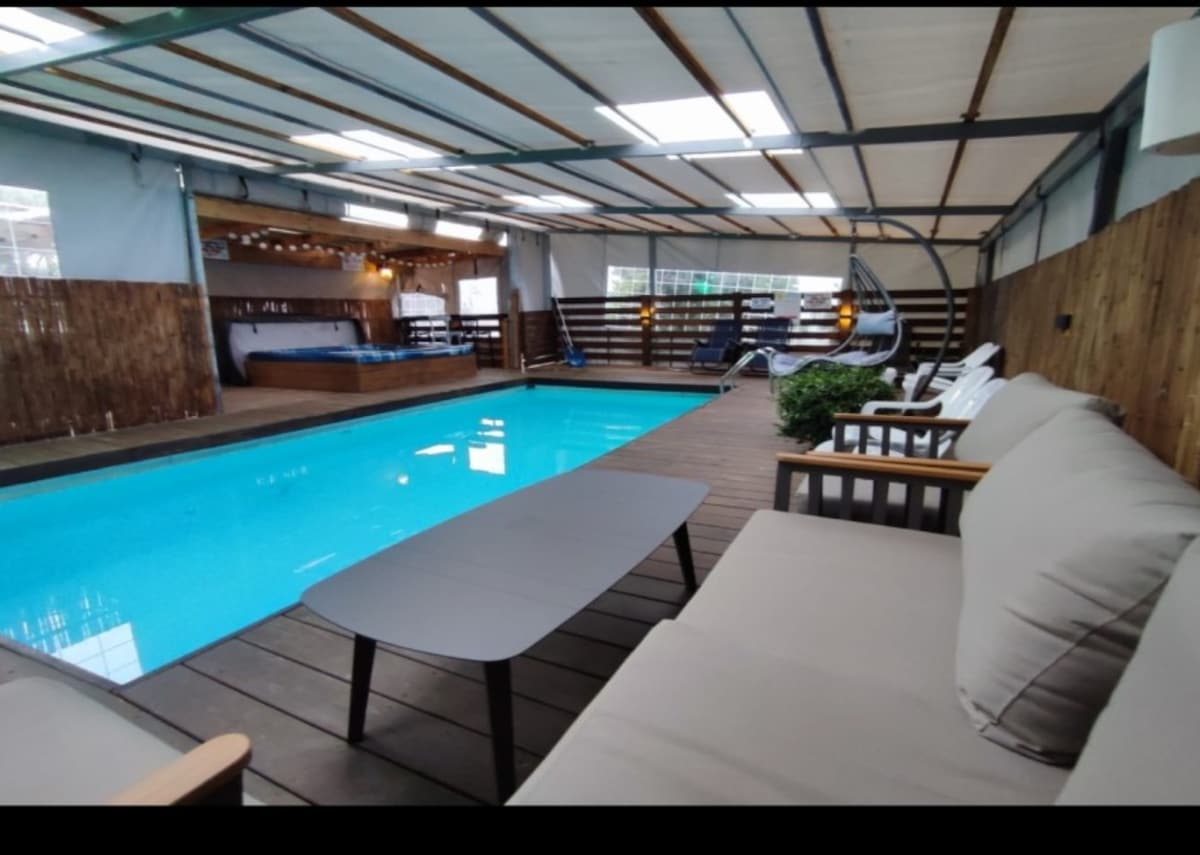 오래된 동네에 있는 특별한 숙소로, 넓은 정원이 있어 분위기가 좋습니다. 유대산맥에 있는 놀라운 장소로, 오래된 나무와 어린 나무가 모두 있습니다. 숙소는 편안하고, 식사를 준비할 수 있는 시설이 완비된 주방이 있어 편안하게 지낼 수 있습니다. 정원에는 작은 모닥불, 온수 욕조, 야외 샤워실, 장식용 수영장, 폭포가 마련되어 있으며, 요가 매트와 다양한 아늑한 공간을 위한 편안한 데크가 있습니다. 보호된 공간 - 도보로 약 1분 거리에 있습니다. 중요한 사항: 이 집은 수년에 걸쳐 다른 사람들에 의해 한 층 위에 지어졌습니다. 특별한 아이템을 찾을 수 있습니다. 그것들을 특별히 조심스럽게 보관해 주시고 정원도 부탁드립니다🙏:)