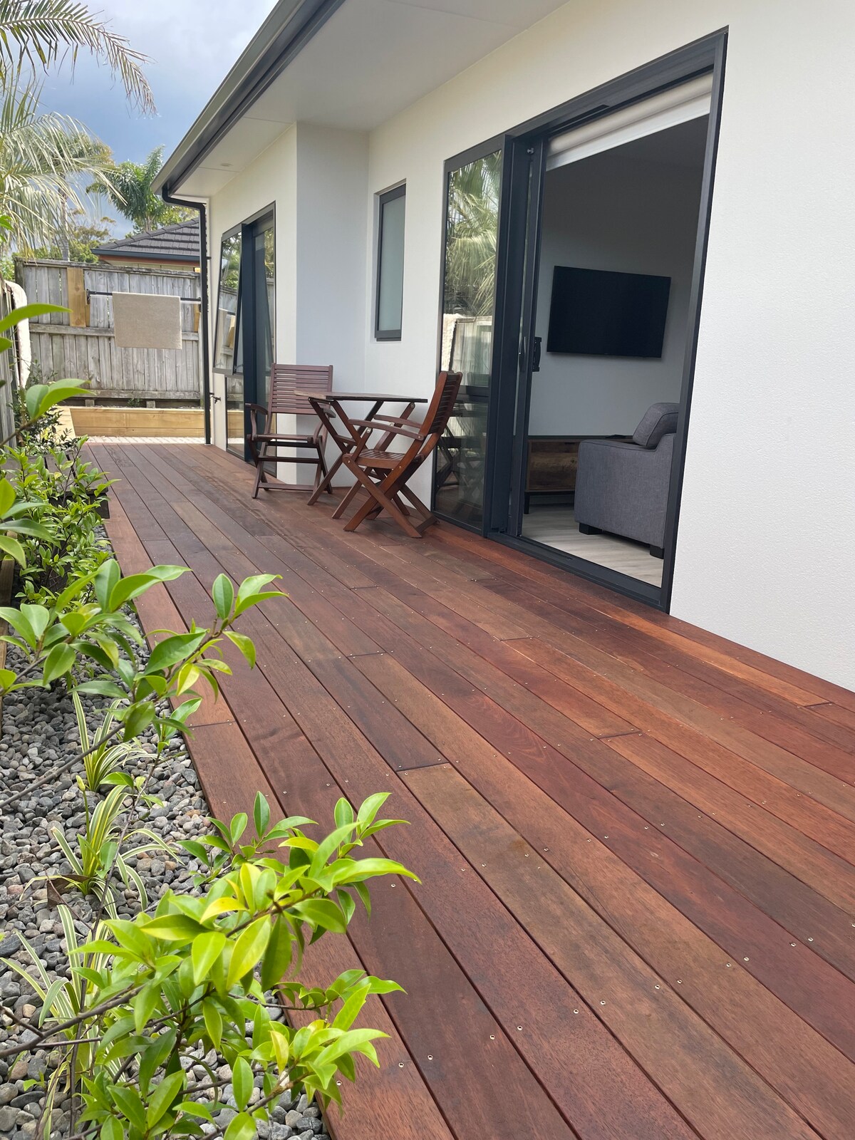 Nestled in tranquil rural Pyes Pa, just 4 km from town essentials, this private and spacious studio offers an ideal retreat for couples seeking relaxation. Enjoy a secluded tropical courtyard complete with a chiminea, sunset deck overlooking serene countryside hills, a salt water pool (shared with hosts but full privacy given). Ample safe parking for trailers, bikes, boats, campervans. Conveniently located off Tauranga direct road from Rotorua, perfect for those travelling through.