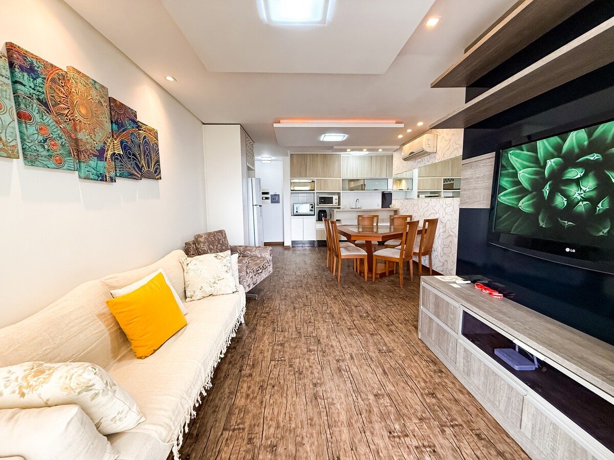 **APTO de NOVELA** Este apto é para hóspedes que não abrem mão de conforto e segurança durante as férias. Amplo apt, tem Sacada com churrasqueira, Internet Wi-fi, TV em todos os quartos e uma super tela 65" na sala. Cozinha completa, vista para piscina e mar, pertinho do Beto Carrero e da Praia. Localização privilegiada em uma das torres mais próximas da praia e garagem - Inclui roupas de cama e toalhas. - Seguimos protocolos extras de higiene de acordo com os padrões Airbnb