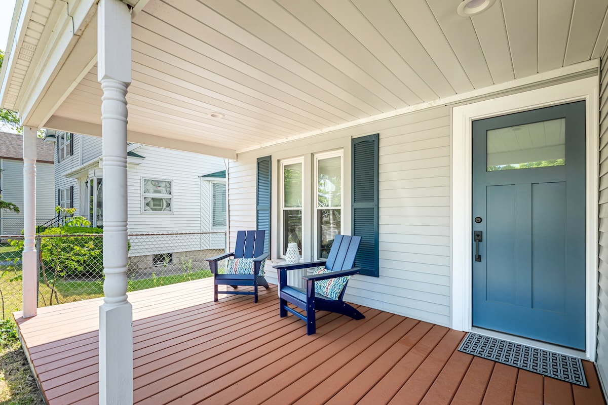 My home is a renovated farmhouse located on scenic M-22 just steps from Market Square Park, 1/2 mile to Main Street and 3/4 of a mile to Lake Michigan. While staying, you will have a completely private upstairs with two bedrooms and a full bathroom. The main floor is also private with use of the living room, half bath, kitchen, and laundry room. There is one Ring doorbell located on the front porch. You will be able to come and go easily, with the electronic keypad door locks.