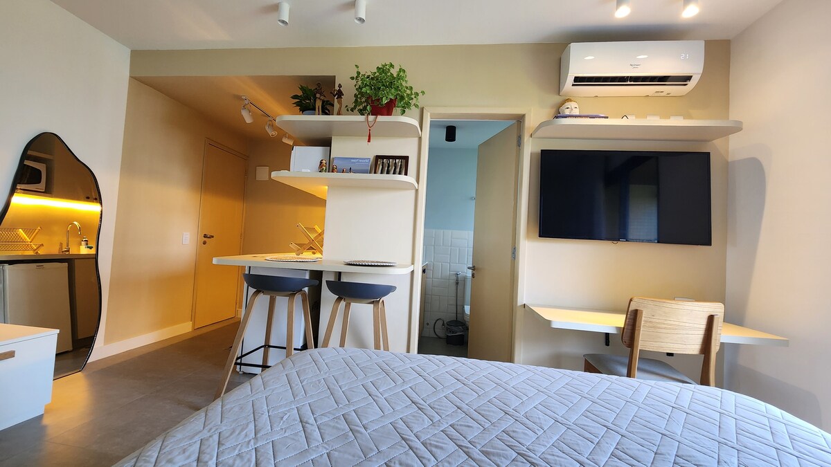 Lindo flat tรฉrreo (NรƒO FUMANTE) na ilha de lagoa Gigรณia, um dos lugares mais pitorescos do Rio Uma bolha de paz e tranquilidade no coraรงรฃo do bairro mais moderno do Rio, perto da praia, metrรด, bares, restaurantes e 5 grandes shoppings Acorde com o canto dos pรกssaros.Passeie em seguranรงa pela ilha sem carros.Vรก de barco atรฉ a praia ร€ beira da รกgua. Vista para a รกgua e montanhas. Aproveite a vida urbana/noturna da regiรฃo Barco (pago) 24h todos os dias do ano Estacionamento pago perto