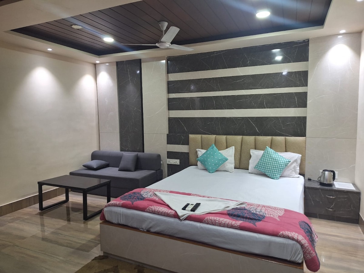 BLUO 숙소 - 수상 경력에 빛나는 숙소! 솔트레이크 시티의 현대적인 1 BHK, IT 파크 섹터 V 허브 및 뉴 타운 라자하트까지 차로 가까운 거리에 있습니다. 콜카타를 방문하는 싱글 임원 및 커플에게 이상적입니다. Sector V Metro는 도보로 가까운 거리에 있습니다. 야외 테라스 가든에서 석양을 감상해보세요. 킹사이즈 침대, 욕실, 발코니, 소파가 있는 거실, 쿡탑, 냉장고, 전자레인지, 조리도구 등이 완비된 주방. 올인클루시브 일일 관세 - 와이파이 인터넷, 넷플릭스/타타스카이 TV, 청소, 세탁기, 전원 백업, 유틸리티, 주차.