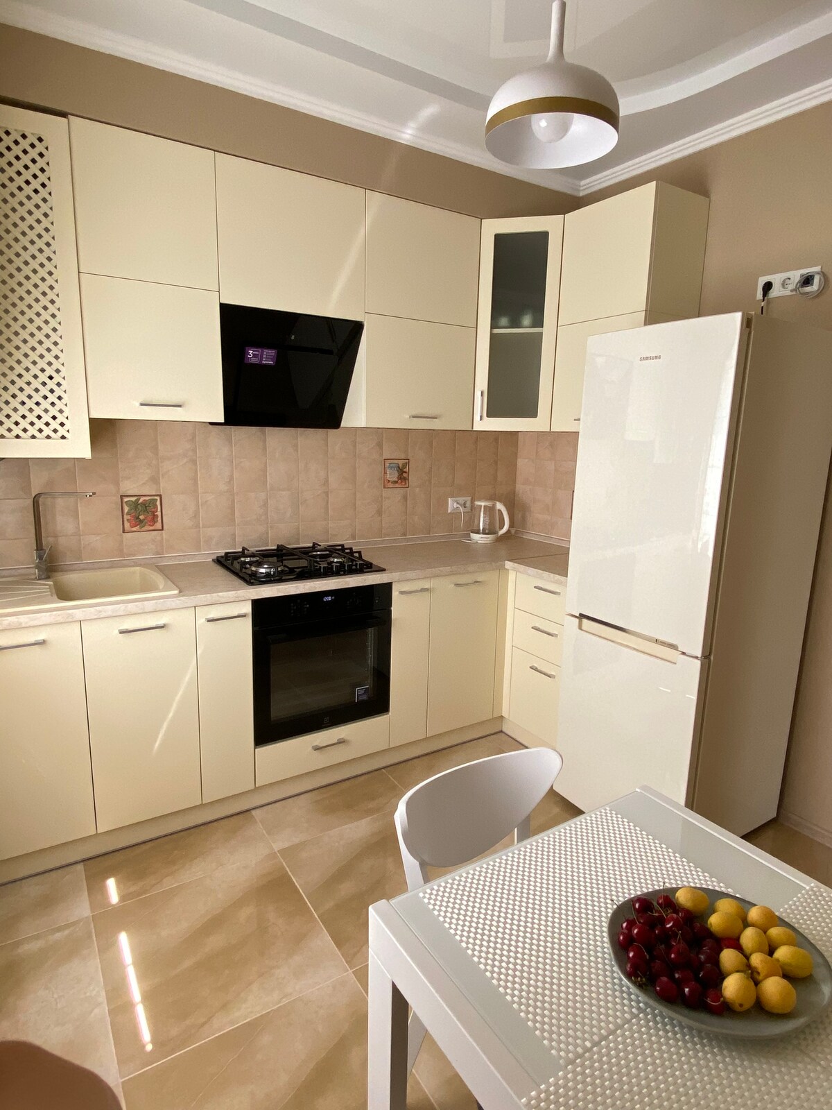 Уютные апартаменты с балконом и современной техникой. Предлагаем стильную и удобную квартиру для комфортного отдыха. Вас ждёт просторный балкон с видом, где можно наслаждаться свежим воздухом. Во дворе есть игровая площадка, что особенно удобно для гостей с детьми.. Кухня оборудована холодильником, микроволновой печью, со всем необходимым для приготовления пищи. Wi-Fi, большой телевизор 50 дюймов с Smart-TV. В квартире есть душ, ванна, туалет. Большая лофт кровать. В 10 минутах супермаркет.