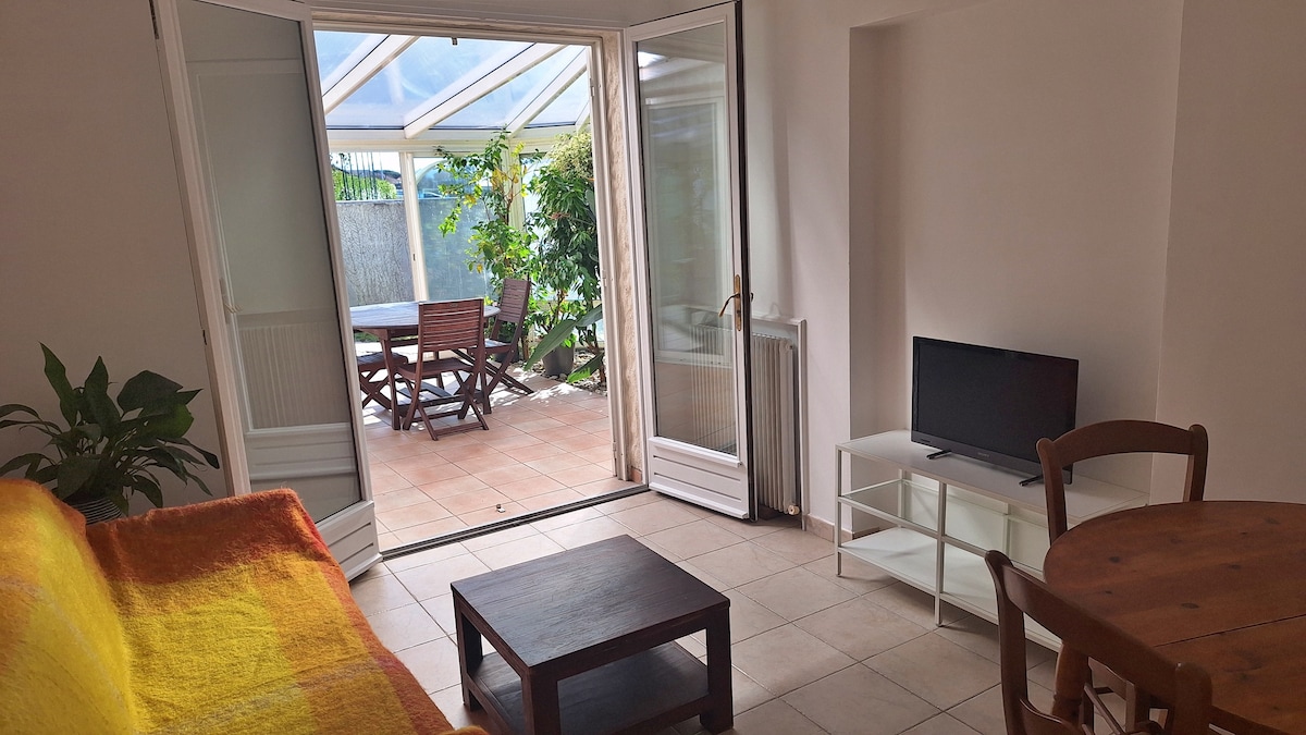 밝고 쾌적한 숙소로 맞은 편이 없는 넓은 야외 공간이 있습니다. 중심지에서 도보로 5분 거리입니다. 안전한 주차 공간. 이 아파트는 장기 숙박에 적합하도록 잘 갖추어져 있습니다. 20m2 테라스가 있는 35m2 아파트, 맞은편 없음. 더블 침대 140x190. TV 및 와이파이. 세탁기. 베르둥 광장, 박람회 및 전시장 근처. 20시 이전 도착.