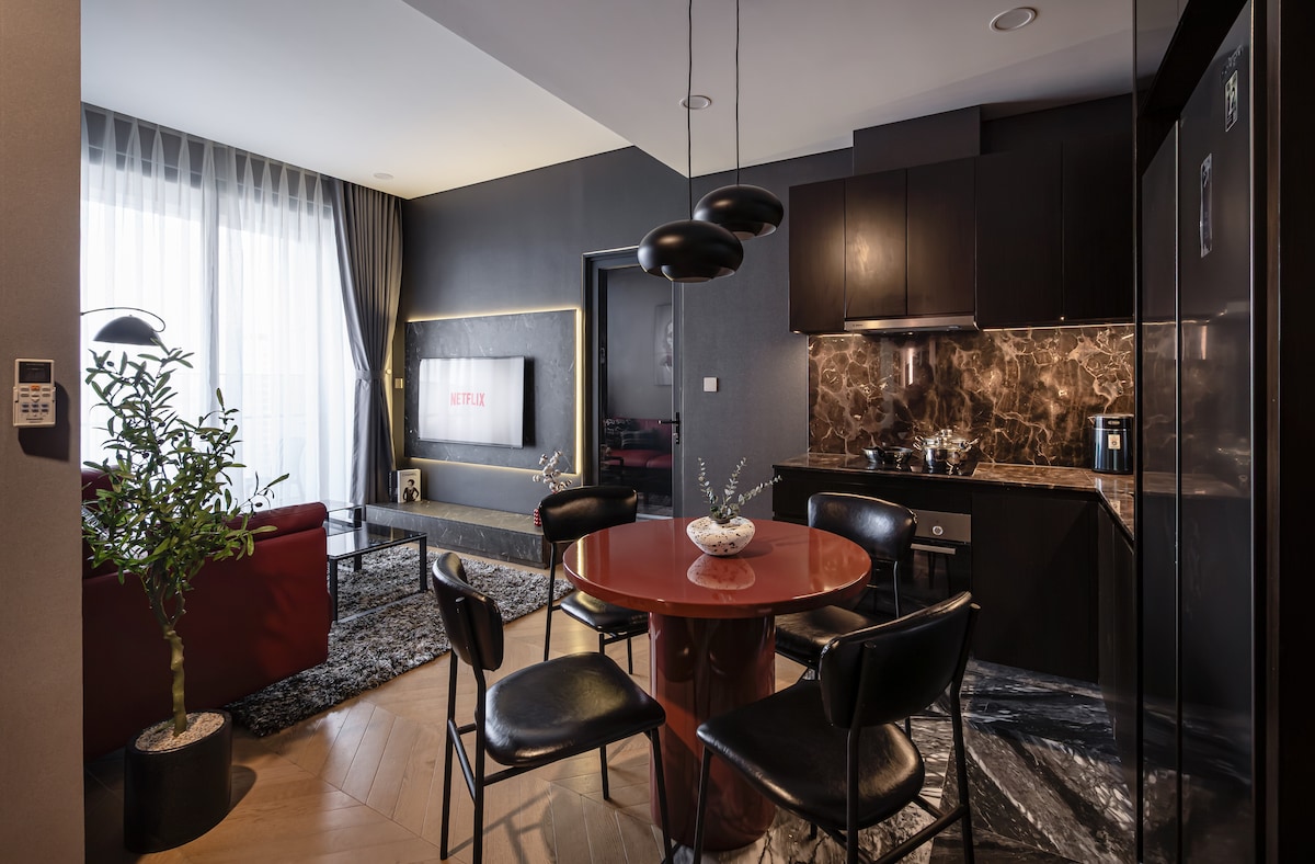 럭셔리 5성급 오페라 레지던스 코너 아파트 바이 치홈 - 리버 뷰 바손 디스트릭트 1, 더 랜드마크 81, 더 갤러리아, 더 메트 오피스, 디스트릭트 2 살라 티소 몰. - 타워 B, 스칼라, 레벨 1x 유닛 10 - 규모: 70m2(코너 유닛) - 침실 2개, 화장실 2개가 있으며, 2~4명이 편안하게 머물 수 있습니다. - 넷플릭스와 유튜브가 있는 65인치 스마트 TV - 소파, 암체어, 티테이블. - 식탁 의자 4개 - 조리 도구 완비 - 초고속 무선 인터넷 사용 가능 • 숙소 전체를 위한 에어컨 - 연중무휴로 건물을 이용할 수 있습니다.