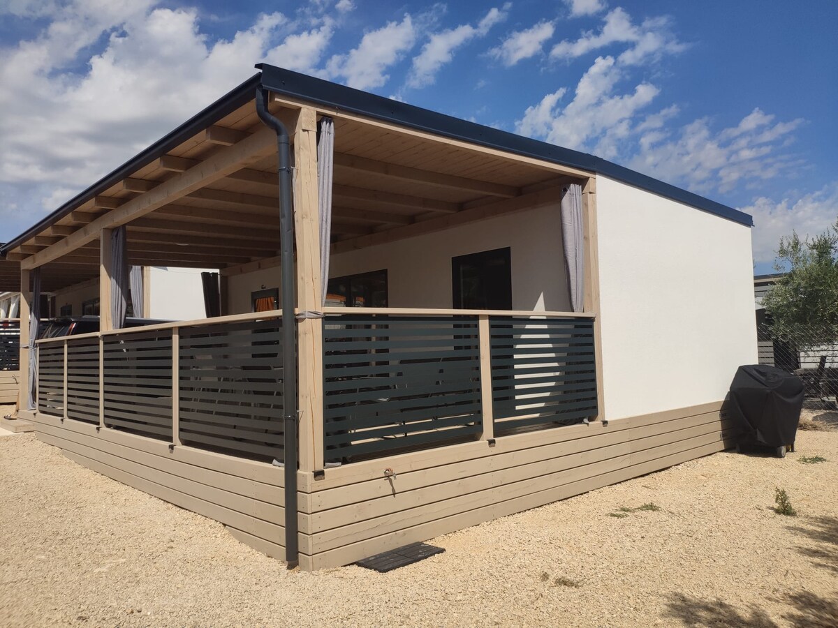 Dobrodošli u našu ugodnu i pažljivo uređenu mobilnu kućicu, smještenu svega 10 metara od mora. Idealna je za goste koji žele pravi ljetni odmor, blizinu plaže i opuštenu atmosferu, daleko od gradske gužve. Kućica je funkcionalna, čista i ugodna te nudi sve što vam je potrebno za bezbrižan boravak – bilo da dolazite na kraći odmor ili duže ljetovanje. Posebna prednost je terasa na kojoj možete uživati u jutarnjoj kavi, obrocima na otvorenom ili večernjem opuštanju uz spektakularn pogled na more.