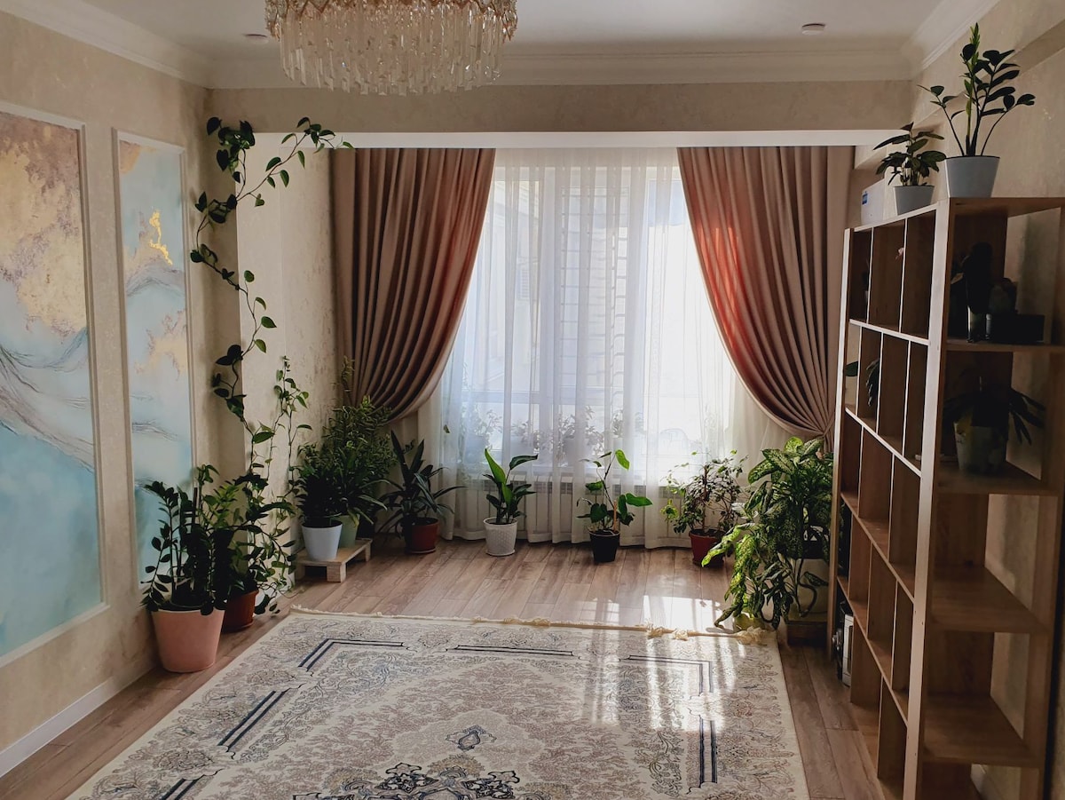 단기 및 장기 숙박에 적합한 세련되고 가구가 완비된 깨끗한 2베드룸 아파트를 만나보세요(어린이 포함 최대 4명, 반려동물 동반 불가). 💙 시내 중심가에 위치(쇼핑몰, 공원, 카페, 박물관 등 도보 거리)하고 있으며, 키르기스 산맥의 전망, 훌륭한 가구, 현대적인 키르기스 장식, 고품질의 가전제품, 초고속 와이파이를 갖추고 있어 휴가나 출장을 편안하고 쉽게 즐기실 수 있습니다. 💙