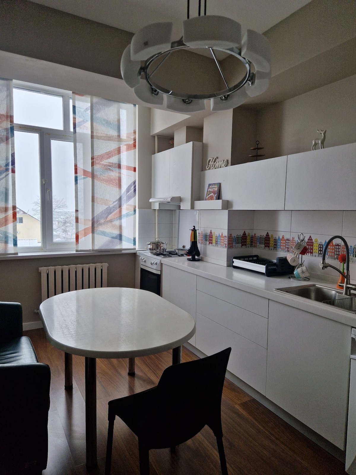 스탈린의 시대에 지어진 넓은 1베드 플랫이지만 서양의 취향에 맞게 현대화되고 새롭게 단장되었습니다. 가구 완비, 중앙 난방, 에어컨, 넓은 발코니, 대형 오픈 플랜 주방/식당/거실, 더블 베드룸, 욕조와 샤워기가 있는 욕실. 중심부에 위치하고 있지만 조용한 동네에 있습니다. 이 건물은 블록에 3개의 아파트만 있습니다.