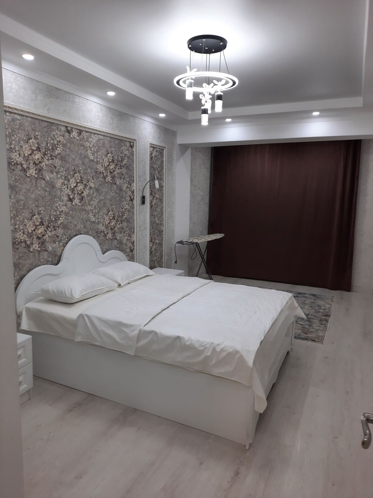 Enjoy to stay in a stylish apartment. Absolutely new, bright, spacious apartment in a new residential complex with a new renovation. Cozy bedroom with a large bed (180*200) with an orthopedic mattress. Kitchen-living room with all necessary for a comfortable stay. The windows offer a beautiful view of the city and the beautiful mountains. Walking area along the entire area with parks, shops,bars, nightclubs, restaurants and cafes. 10minutes walk to the central square Ala-too.
