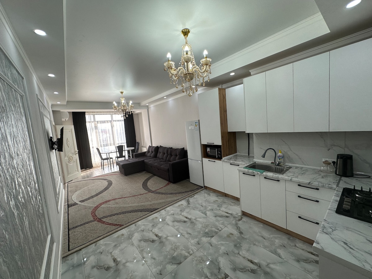 도심에 새로 지은 엘리트 하우스에서 편안한 숙박을 위한 아늑하고 고급스러운 아파트입니다. 숙소는 낮과 밤 모두 돋보입니다. 밤에는 건물이 매우 아름답게 빛나며 멀리서도 볼 수 있습니다. 건물 1층에는 24시간 슈퍼마켓 및 약국, 헬스장, 미용실, 은행이 있습니다. 아파트는 매우 밝고 편안하며 모든 편의시설을 갖추고 있습니다. 건물은 안전하며 24시간 경비가 되고 있으며, 부지 내에 놀이터도 마련되어 있습니다.
