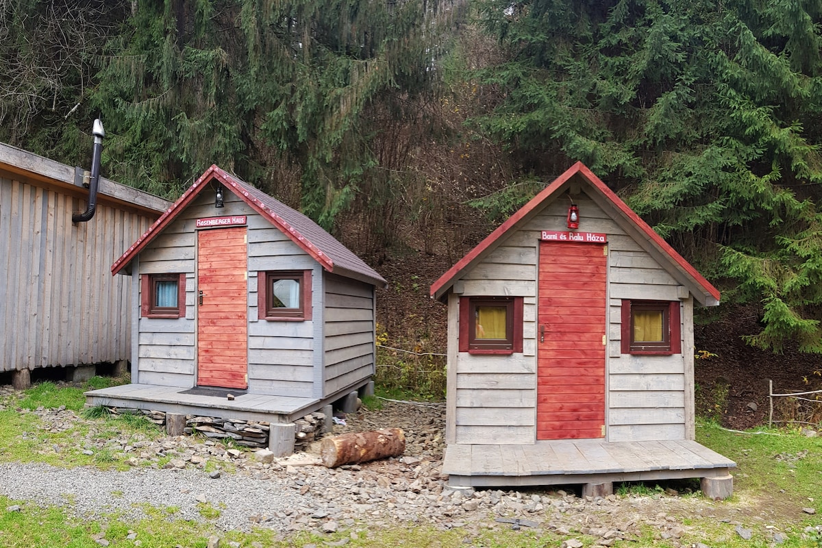 캠핑 페인 (Camping Fain) 의 초소형 목조 주택입니다. 가구와 조명을 포함한 직원과 자원봉사자가 100% 지은 초소형 목조 주택입니다. 우리는 창작을 즐기고 많은 사람들이 우리의 열정을 공유합니다. 로젠버거 하우스 (Rosenberger Haus) 와 바르니 에 랄루 하자 (Barni es Ralu Haza) 라는 두 개의 집이 있습니다. 저희 캠핑장에는 모든 숙소에 이야기가 있습니다. 직접 찾아보세요!