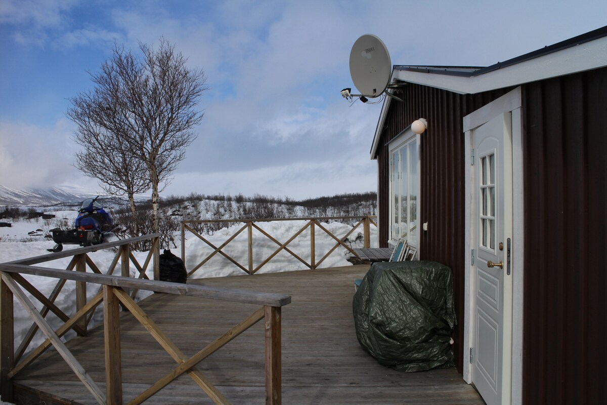 Wonderful cottage with 360 view around Abisko perfect for Aurora Borealis (northern lights) 2bed rums 1common rum with 1-2p sofa bed and dining area. full kitchen, water hot and cold for drinking and cooking. HDTV , possibleWIFI for a fee, toilet is new updated incineration toilet inside the cottage and shower I will show you how everything works and get you started ,i always meet my guests on arrival in Abisko