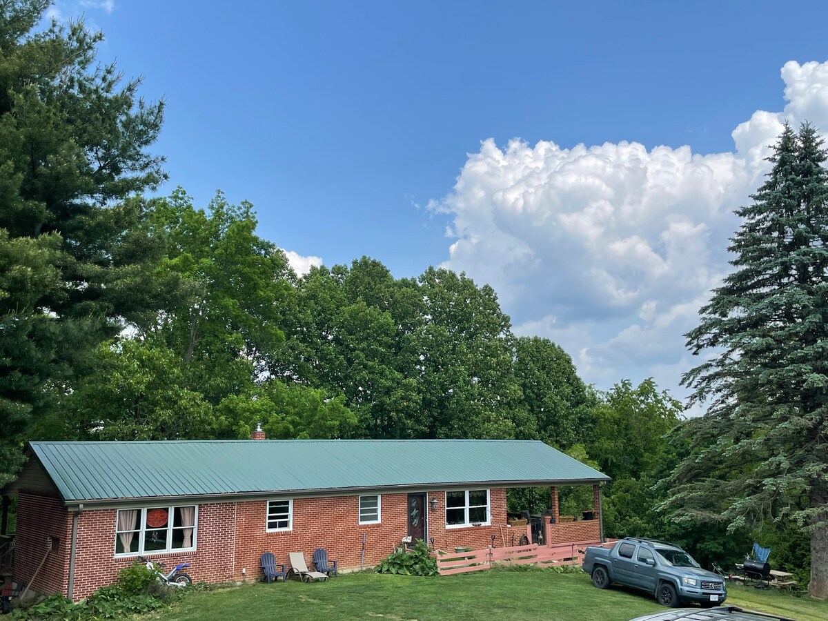 동부 콘티넨탈 디바이드 꼭대기에 위치한 16에이커의 블랙스버그 최고의 전망을 즐기세요. VT 캠퍼스 단 5분, 식료품점에서 2분 거리에 있습니다. 숙소는 깨끗하고, 심플하고, 아늑하며, 모험을 즐기며 휴식을 취할 수 있도록 준비되어 있습니다. 3마일 이상의 언덕길을 제공합니다. 하이킹, 달리기, MTBIng에 안성맞춤입니다. 물고기 연못 저희는 반려동물을 동반할 수 있는 숙소입니다. 이제 고양이 2마리, 검은 염소 ~ RIP입니다. 편안하게 머물다 가시길 바랍니다.