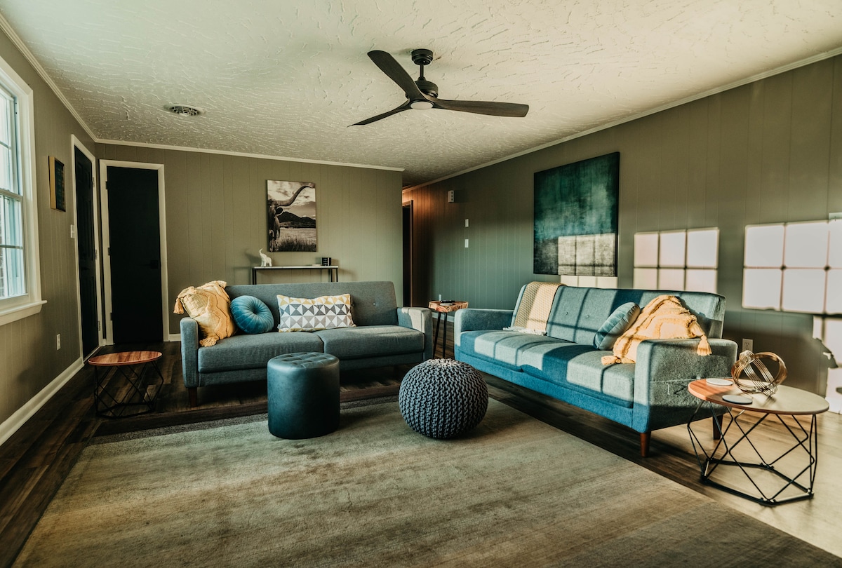 반려동물 동반 가능 • 전기차 충전기 • 펠로톤 • 로어노크 시내 근처, 킹사이즈 침대 2개, 퀸사이즈 침대 3개 — 원격 근무 또는 장기 숙박에 이상적입니다. 펠로톤, 러닝머신, 홈오피스, 1기가 파이버, 레벨 2 EV 충전기를 즐겨보세요. 로어노크까지 20분, 블랙스버그까지 45분, 그린필드 스포츠 콤플렉스까지 8분. 하이킹, 사냥, 가족 휴가를 즐기기에 완벽한 곳입니다. 트리플 크라운, 맥아피 노브, 드래곤스 투스, 팅커 클리프스에 편리하게 이동할 수 있습니다.