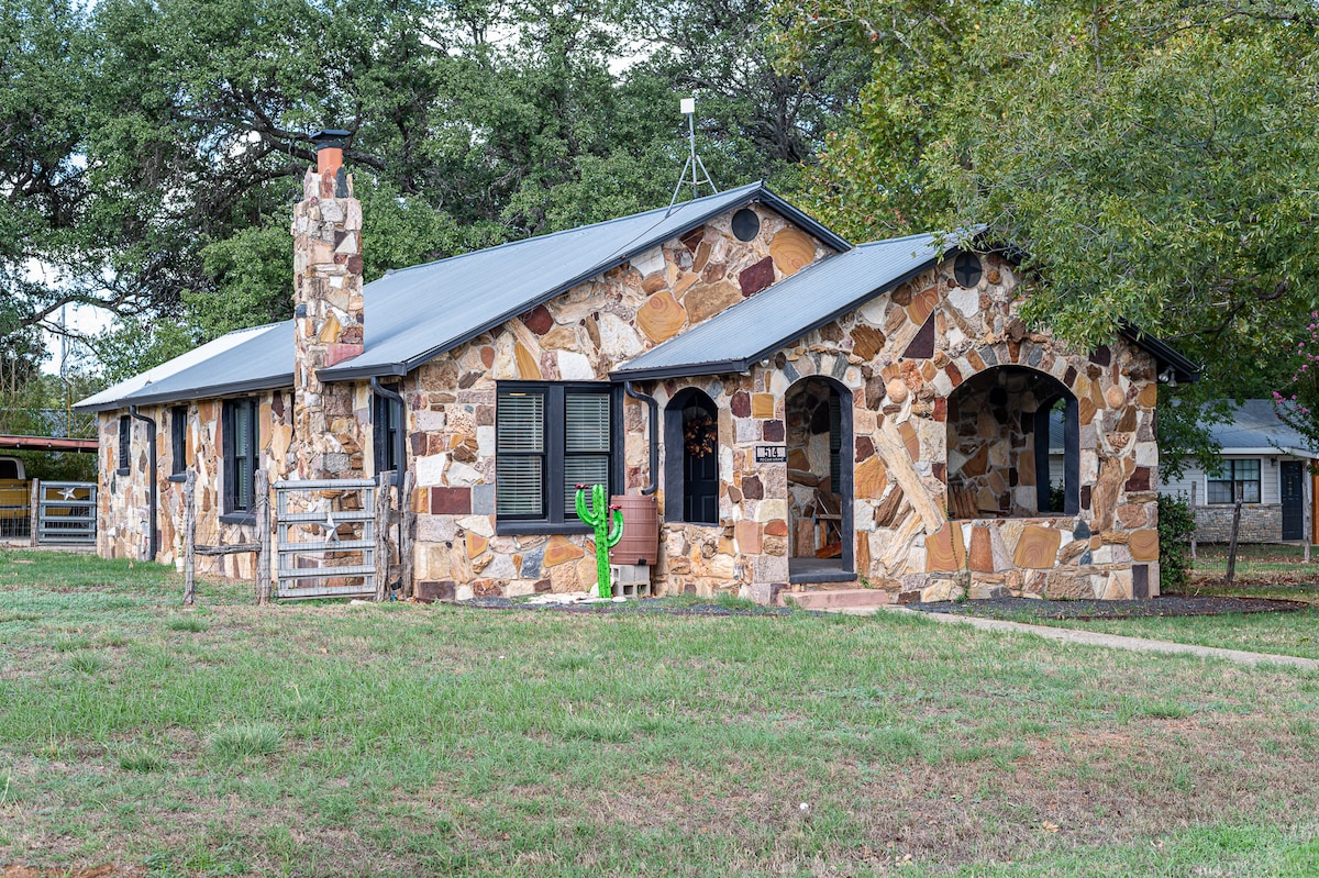 존슨 시티의 중심지에 위치한 텍사스 와인 트레일의 관문에 자리한 피칸 코티지에 오신 것을 환영합니다! 존슨 시티 커피, 나이스 앤 이지 칵테일 바, 페칸 스트리트 브루어리, 사이언스 밀 등에서 몇 분 거리에 있습니다. 텍사스 백주년을 기념하여 1936년에 지어진 이 역사적인 보석은 석화된 나무, 사암, 석회암, 석영, 화강암이 독특하게 어우러진 독특한 건축물을 자랑합니다. 울타리로 완전히 둘러싸인 코너에 위치한 페칸 코티지는 시대를 초월한 외관 디자인을 보존하고 있습니다.