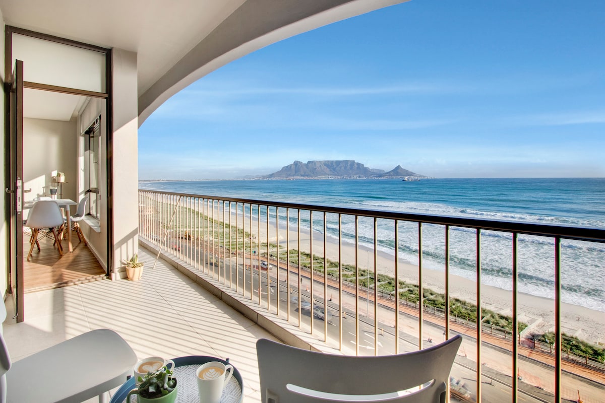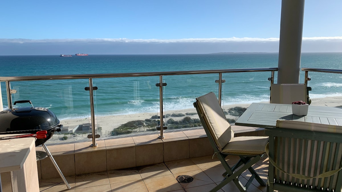 This bright and spacious one bedroom apartment boasts a breathtaking view of Table Mountain and Cape Town surrounds. It includes a queen extra-length bed, uncapped wifi, balcony, dishwasher, oven, laundry facilities, and gym within a 24/7 security-controlled building. Featuring also a BBQ area and outdoor shower for surfers. From the elevated and secluded balcony, you may observe the plentiful marine life that visit this popular beach, also enjoying world class sunsets in ultimate privacy.