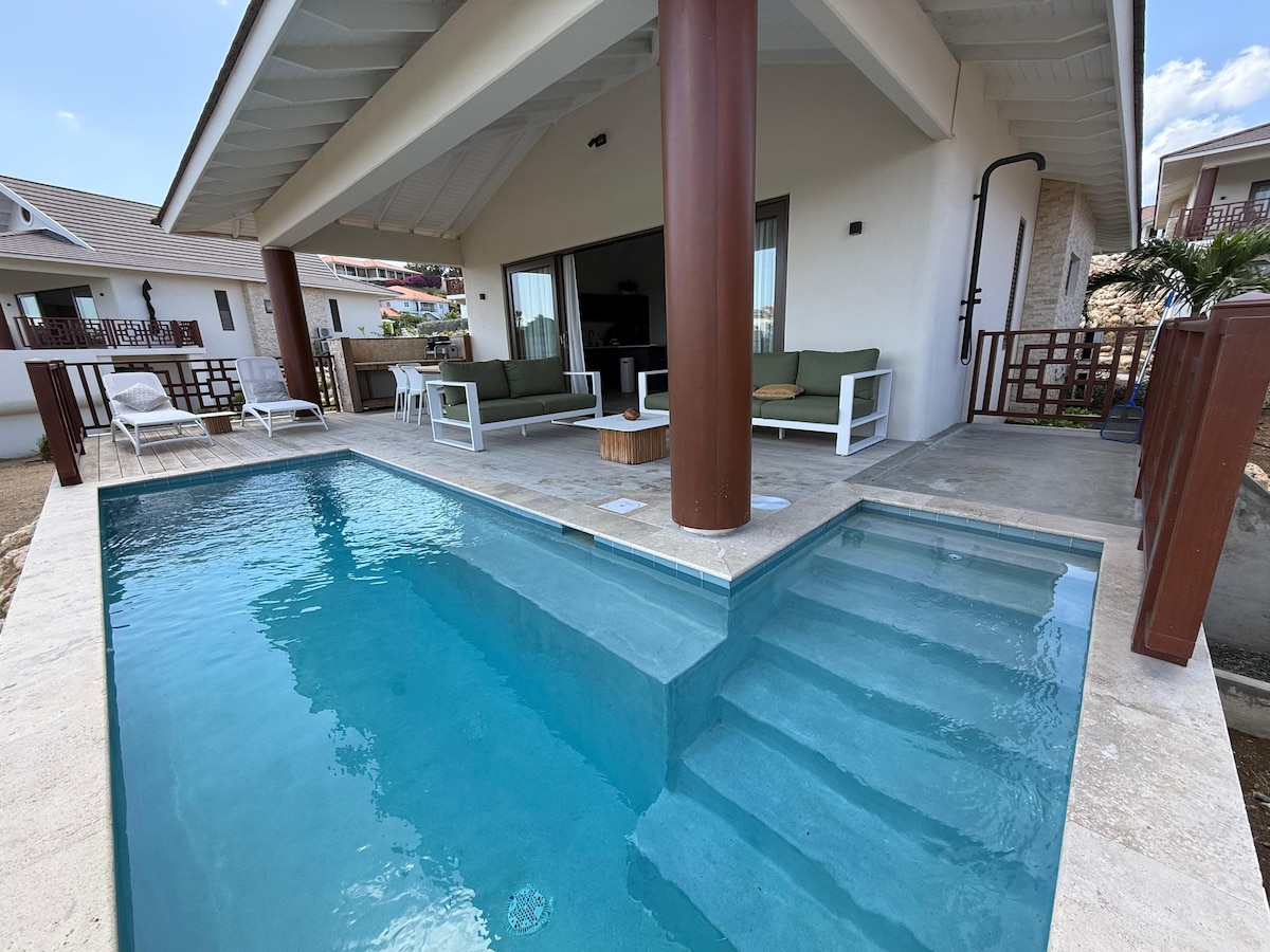 New luxury villa with pool located right on golf course 300m from beach of Blue Bay Resort Curaçao 🌴 Enjoy your private pool, three bedrooms each with their own bathroom and air conditioning, a modern fully equipped kitchen and a spacious covered terrace with pool, outdoor shower, BBQ, and beautiful golf course views. Only 5 minutes walk from the private beach, with free access for our guests. The most beautiful Jazmyn villa on Blue Bay Resort! Perfect for families or friends seeking comfort.