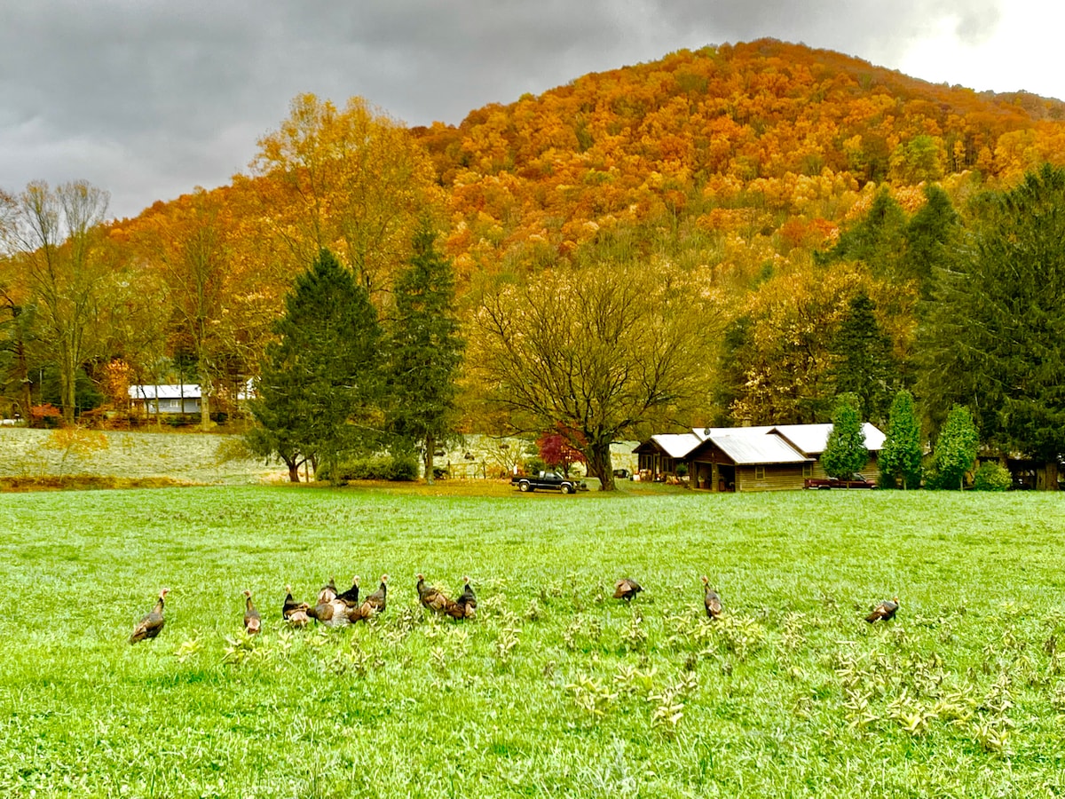 피콕 코티지에는 나무 천장과 벽, 타일 바닥, 간이 주방, 멋진 크기의 샤워실이 있습니다. 큰 그림 창문을 통해 알파카, 양, 스코틀랜드 하이랜드 소가 있는 목초지 전망을 감상할 수 있습니다! 친절한 염소 4마리가 있는 두 번째 목초지와 12마리의 알을 낳는 암탉, 유기농 정원 (계절), 작은 개울 2개를 즐겨보세요. 시골에 있는 고요함을 갖춘 이 숙소는 인터스테이트에서 단 2분 거리에 있으며 애슈빌 중심지에서 15분 거리에 있습니다.