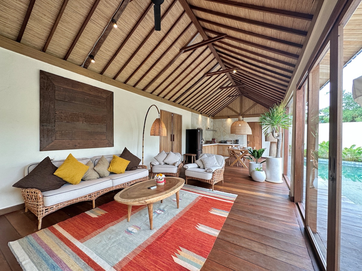 BoBos Villa Echo: 부르주아 고급스러움과 보헤미안 영혼이 만나는 곳 창의적인 여행자를 위해 엄선된 안식처를 만나보세요. 이 숙소에서는 침실 1개가 닫혀 있는 넓은 2베드룸 빌라를 단독으로 이용하실 수 있어 넓은 거실 공간과 전용 수영장을 단독으로 즐기실 수 있습니다. 짱구 에코 해변에서 몇 걸음 거리에 있는 조용하고 개인적인 은신처에서 완벽한 '삶의 예술'을 즐기며 휴식을 취하세요.