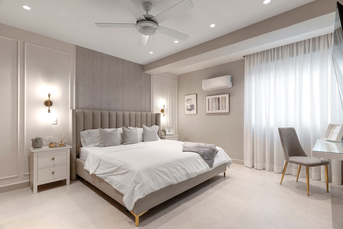 Beautifully decorated apartment with great amenities. Fully equipped apartment with a queen-sized bed and a comfortable pull out couch. This spacious apartment we have prepared for you has a very peaceful residential vibe at Evaristo Morales, a safe & luxurious neighborhood in downtown Santo Domingo. It also has a lovely ad spacious terrace with an amazing Infinity ♾ Pool, the ideal spot for you to relax and de-stress.