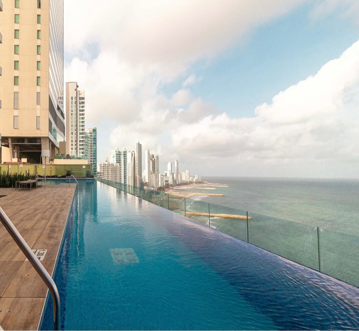 Discover elevated luxury in our 34th-Floor Ocean View Suite, The ICONZ Sky Residence, located in Cartagena's safest and most upscale area, steps from the beach and 5 minutes to Walled City Wake up above Cartagena’s skyline with views via floor to ceiling windows & lounge on a huge comfortable balcony. You'll LOVE: ✨Modern design & A/C throughout ✨Amaizing Pool, Gym, Sauna, 24-Hour Security ✨Maid & Concierge ✨Premium mattress, linens & pillows ✨24-hour Self Check-in with Smart Lock ✨Smart TVs