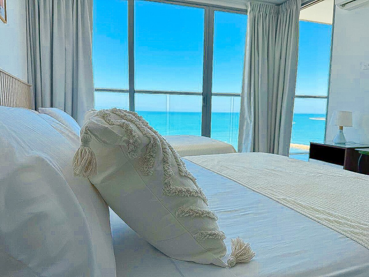 -아름다운 바다 전망과 성벽 도시 전망 - 시설 완비 -100% 안전 - 침실 2개 + 거실 + 파노라마식 발코니 -독립 샤워기가 있는 욕실 3개(온수) -모든 객실에 에어컨 완비 -와이파이 - TV 2개 -이른/늦은 항공편? 합리적인 수준의 짐을 무료로 보관해 드립니다(사전 문의). -수영장 및 자쿠지 -디지털 락 - 세탁기 -해변 직접 접근 • 무료주차 • -연중무휴 보안 -매트리스/베개/시트/수건 지속적으로 소독
