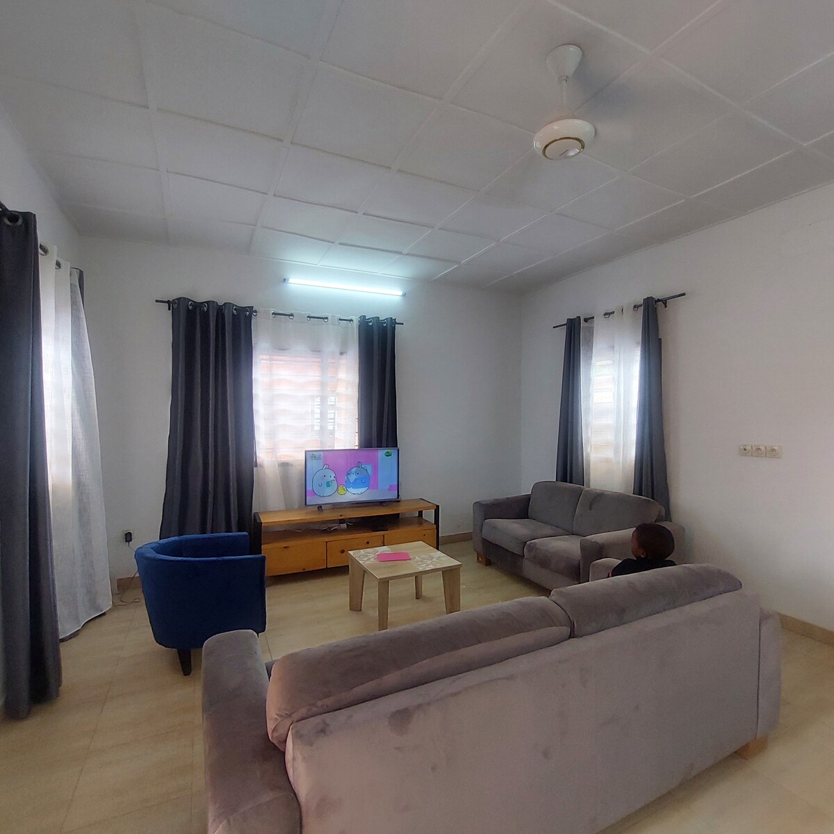 넓은 타일 공간, 차고, 욕실, 도시 전망을 감상할 수 있는 주방, 보안 장치, 생활 지원, 여행 수단을 갖춘 빌라 R +1에 위치한 아파트입니다. 베냉의 경제 수도 코토누에서 90km, 베냉의 역사적 수도 아보메이에서 5km 거리에 있는 조용하고 쾌적한 숙소입니다.