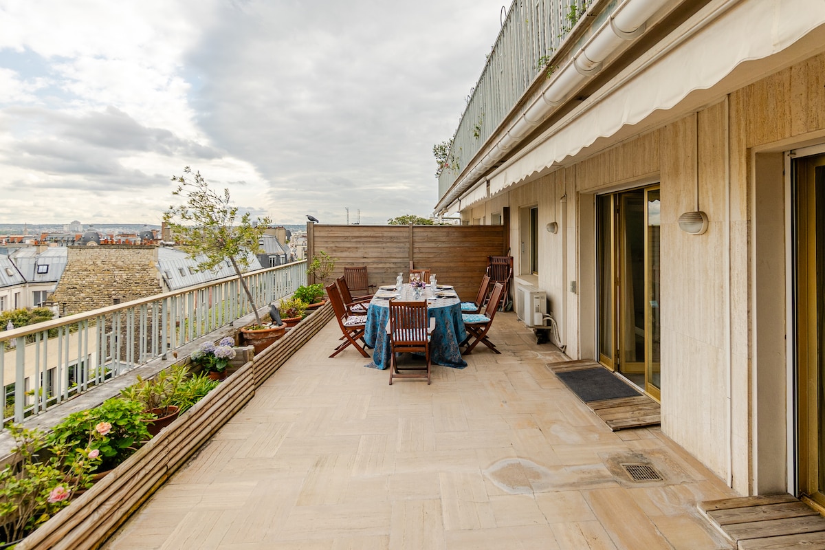 에펠탑이 내려다보이는 40m² 규모의 넓은 테라스를 갖춘 95m² 규모의 독특하고 조용한 숙소에서 휴식을 취하세요. 침실 2개, 옷장이 있으며 매우 조용하고 탁 트인 전망을 자랑합니다. 멋진 욕실, 화장실 2개. 엘리베이터가 있는 8층, 경비원이 있는 건물. 최소 3박