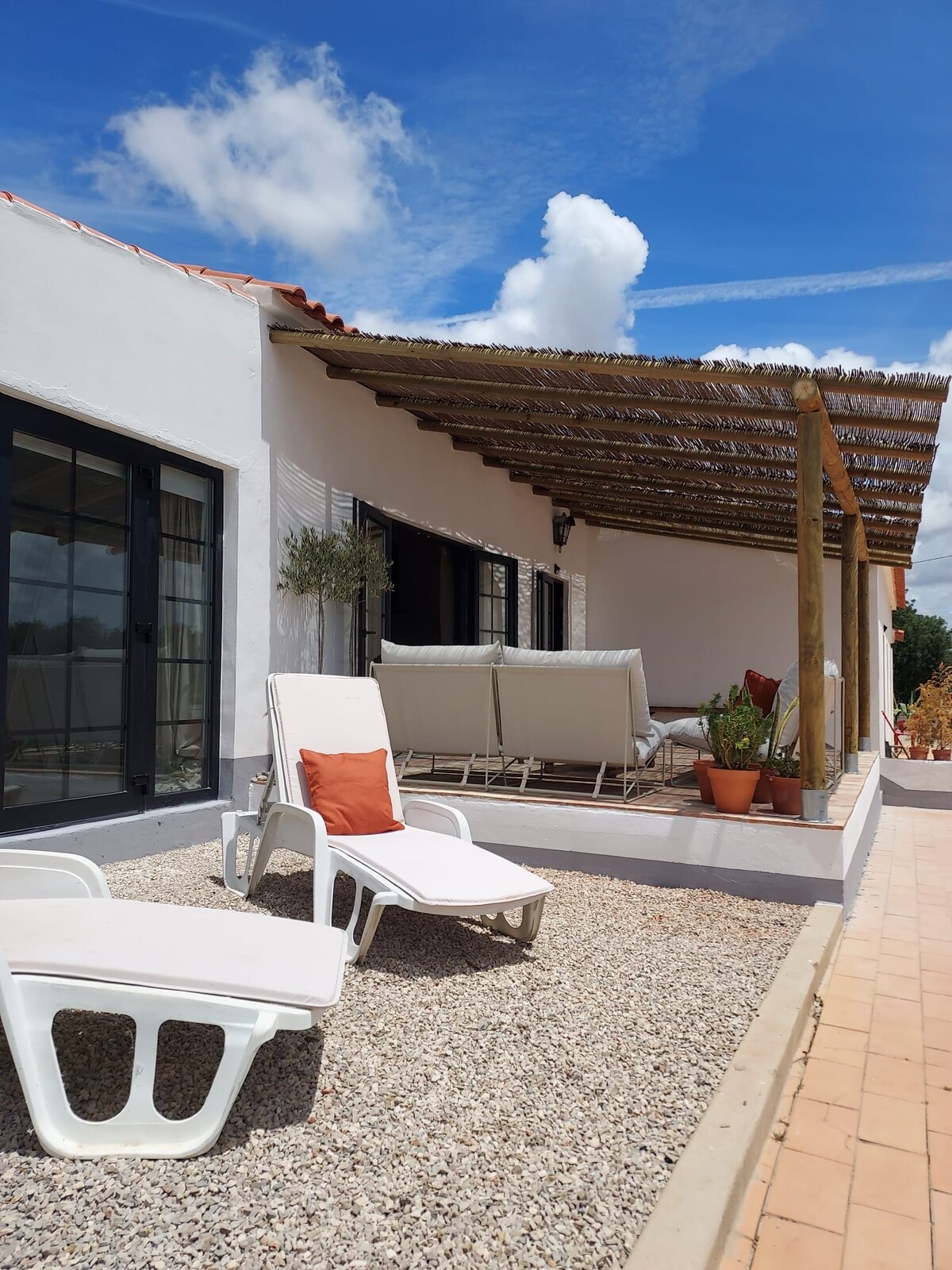 Discover modern Mediterranean-inspired living at this exquisite villa in Santa Bárbara de Nexe. Minutes from Faro Airport and Almancil, this serene retreat offers a heated pool, rooftop jacuzzi, seamless indoor-outdoor living, an outdoor kitchen, and elegant Mediterranean-style interiors. Perfect for families, couples, or groups seeking a memorable getaway with hiking trails, countryside views, and access to beaches, golf courses, shopping, and dining. Send us a message!