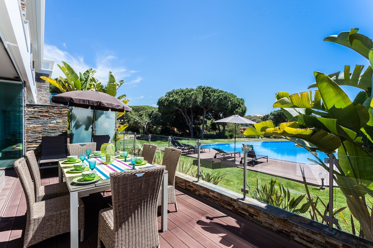 Pinhal do Golfe is a quiet, beautiful landscaped and secure Complex. This lovely ground floor apartment offers a peaceful and homely holiday environment, which is ideal for eating out or relaxing in the sun. There are no main concerns that young children could fall off the veranda, as the apartment is on the ground floor and has a direct access to the complex gardens and pool.