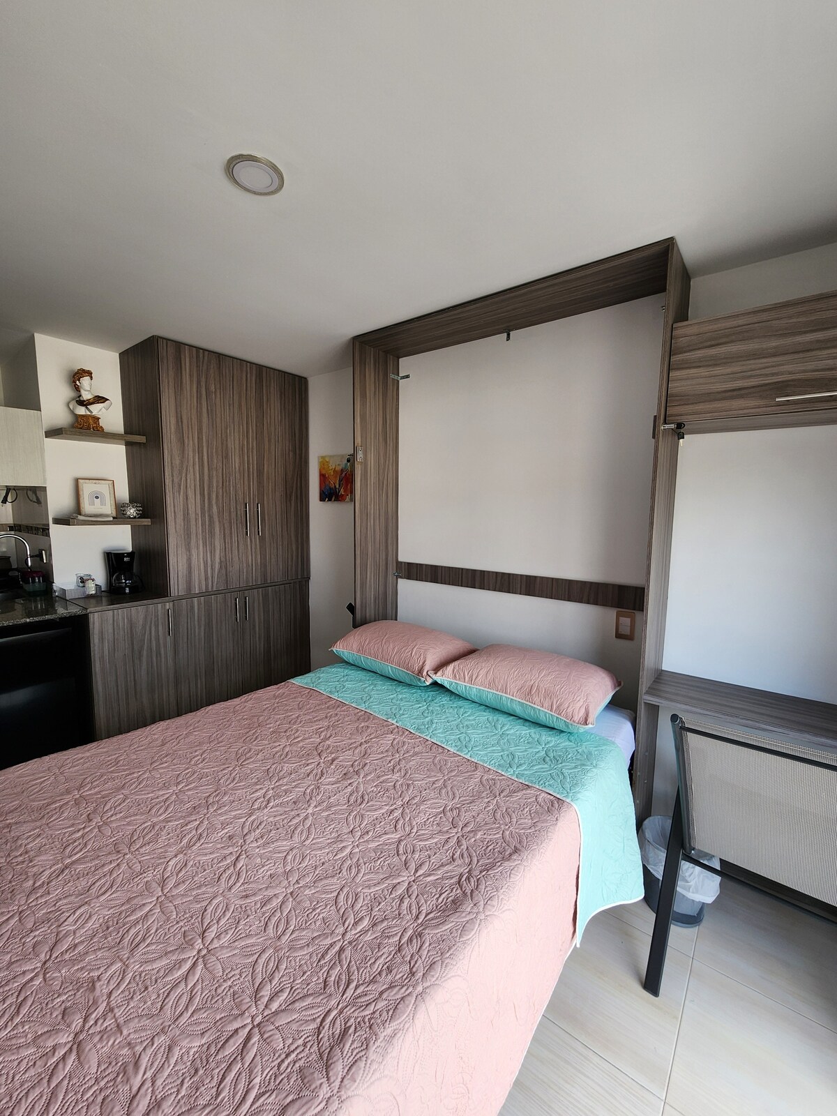 Acogedor aparta estudio amoblado con acceso autónomo, super bien ubicado, zona segura, cerca al centro de la ciudad y cerca a todo. Cerca al parque el lago, plaza de Bolívar, coliseo mayor y a una cuadra del centro comercial San andresito. Cuenta con una cama doble, mesa para trabajar, servicio de plancha o lavandería por un módico costo adicional, secador de cabello, cocina equipada, baño con agua caliente, TV y Internet por cable y wifi.