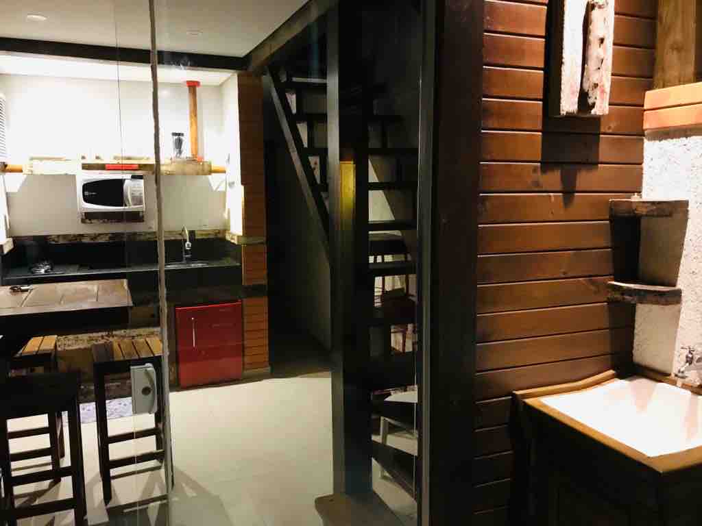 Apartamento Soleil Apto Duplex Para até 5 pessoas Esta unidade possui duas varandas, sendo uma delas com churrasqueira. No primeiro piso possui cozinha completa, sala, bicama, TV à cabo 32” e lavabo. No segundo piso conta com cama de casal, ar condicionado split, Smart TV à cabo 32”, banheiro e cofre.