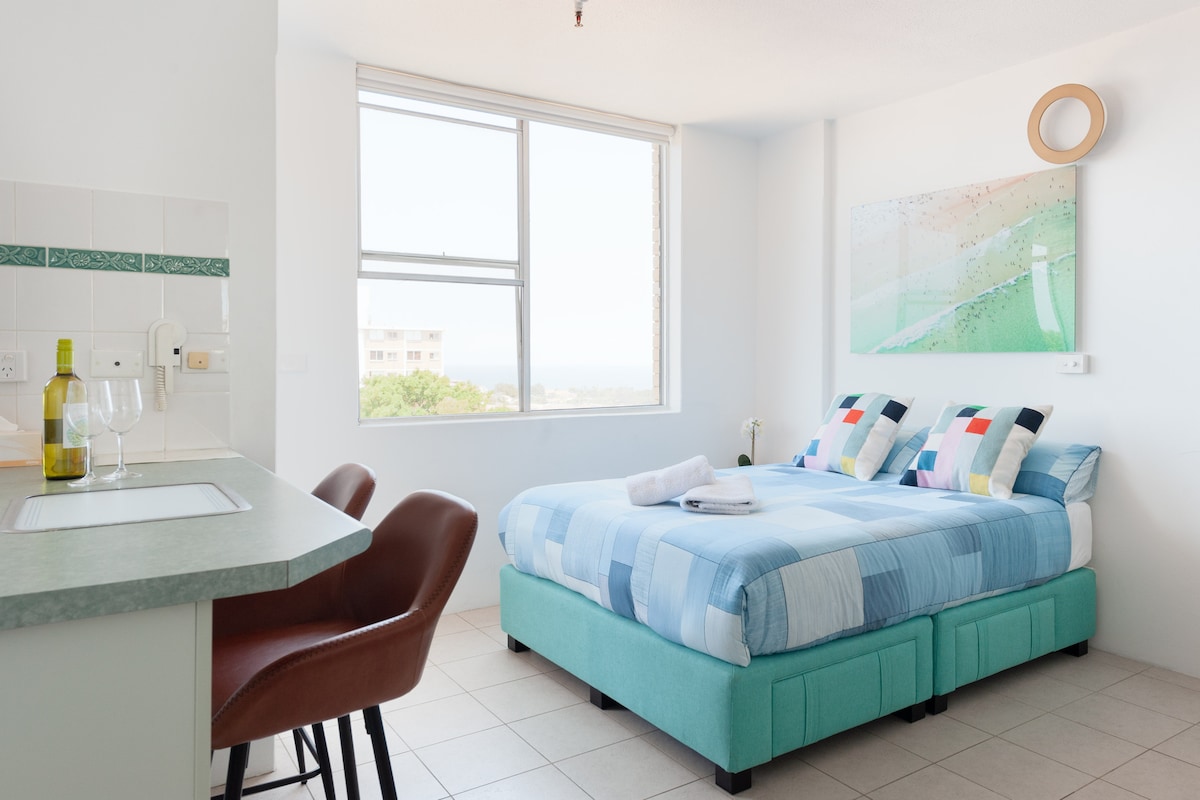 모든 디테일이 인상적으로 디자인된 본다이에서 가장 포스팅하기 좋은 스튜디오에 오신 것을 환영합니다. 새롭게 리모델링한 디자이너 스튜디오는 작은 공간이지만 뛰어난 디자인 덕분에 편안함과 스타일을 극대화합니다. 발을 들여놓는 순간부터 창가에 놓인 벤케와 식탁에 둘러싸인 본다이 해변의 탁 트인 전망에 매료될 것입니다. 이곳은 나만의 전망대입니다. 단순한 숙소가 아닌, 전망과 공간 자체가 모두 사진에 담을 만한 가치가 있는 휴양지입니다.