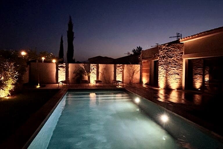 해변에서 5분 거리에 있는 석조 주택 온수 수영장