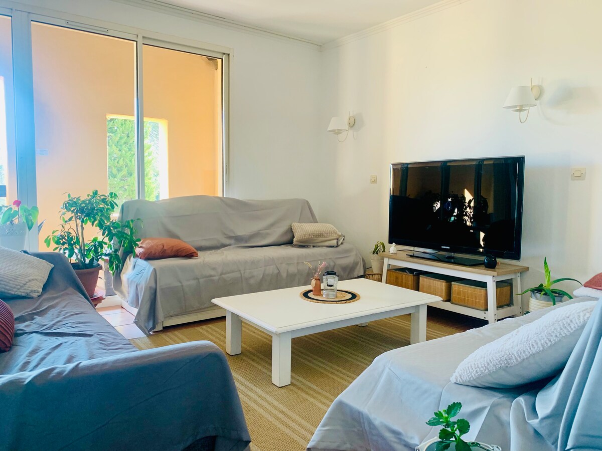 Charmant T2 de 32 m2 , 4 personnes sur le Golf de Pont-Royal , climatisé, rénové, composé d'une belle loggia avec une vue magnifique sur le golf, une cuisine équipée ouverte sur le salon avec 2 canapés-lits ,une TV ,une salle de bain avec douche ,baignoire, un WC séparés, une chambre séparée avec un lit double ,une TV. Inclus dans la location : Wifi , Linge de lits , de bains , entrée piscine inclus pour Juillet et Août . D'Avril à fin Juin , les entrées piscines sont en suppléments .