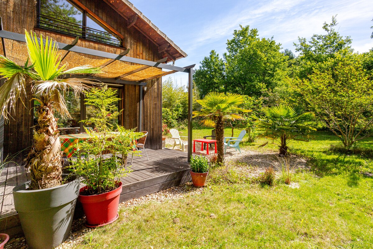 Notre maison type cabane tchanquée est un incontournable pour passer des vacances sur le bassin , le lieu est un cocooning paradisiaque où chaque détail a été pensé de manière à qu’on puisse se détendre et se évader , un jardin tropical et méditerranéen entoure chaque recoin de la maison , elle se trouve à la campagne du val de l'Eyre proche d’Arcachon et Pyla 5 km bassin et 25 de l’océan sans vis à vis n'y bruit .présence de cameras de surveillance sur le parking à l’entrée de la maison.