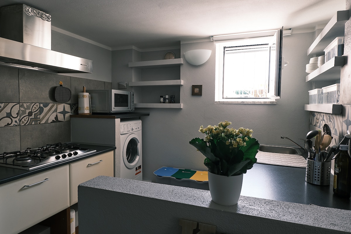 입구 베란다, 오픈 키친, 소파 베드가 있는 거실 공간, 식사 공간, 욕실 2개, 그 중 하나는 서비스, 더블 침실 2개로 구성된 새롭고 완전히 개조된 현대적인 가구가 구비된 타베르나 스타일의 아파트입니다. 숙소 입구 앞 전기 게이트 내부에 전용 주차 공간 3개가 있습니다. 이 아파트는 1층에 위치해 있으며 여름에는 시원하고 쾌적하게 유지되지만 에어컨이 분리되어 있습니다.