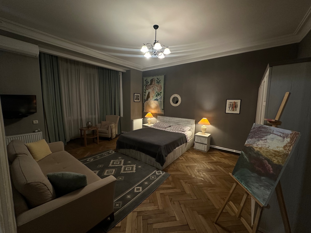 The cozy studio apartment is centrally located in a historic building, constructed in the 19th century in the traditional "old-Tbilisian" style. For those looking to immerse themselves in the authentic atmosphere of the city, this is the perfect spot.