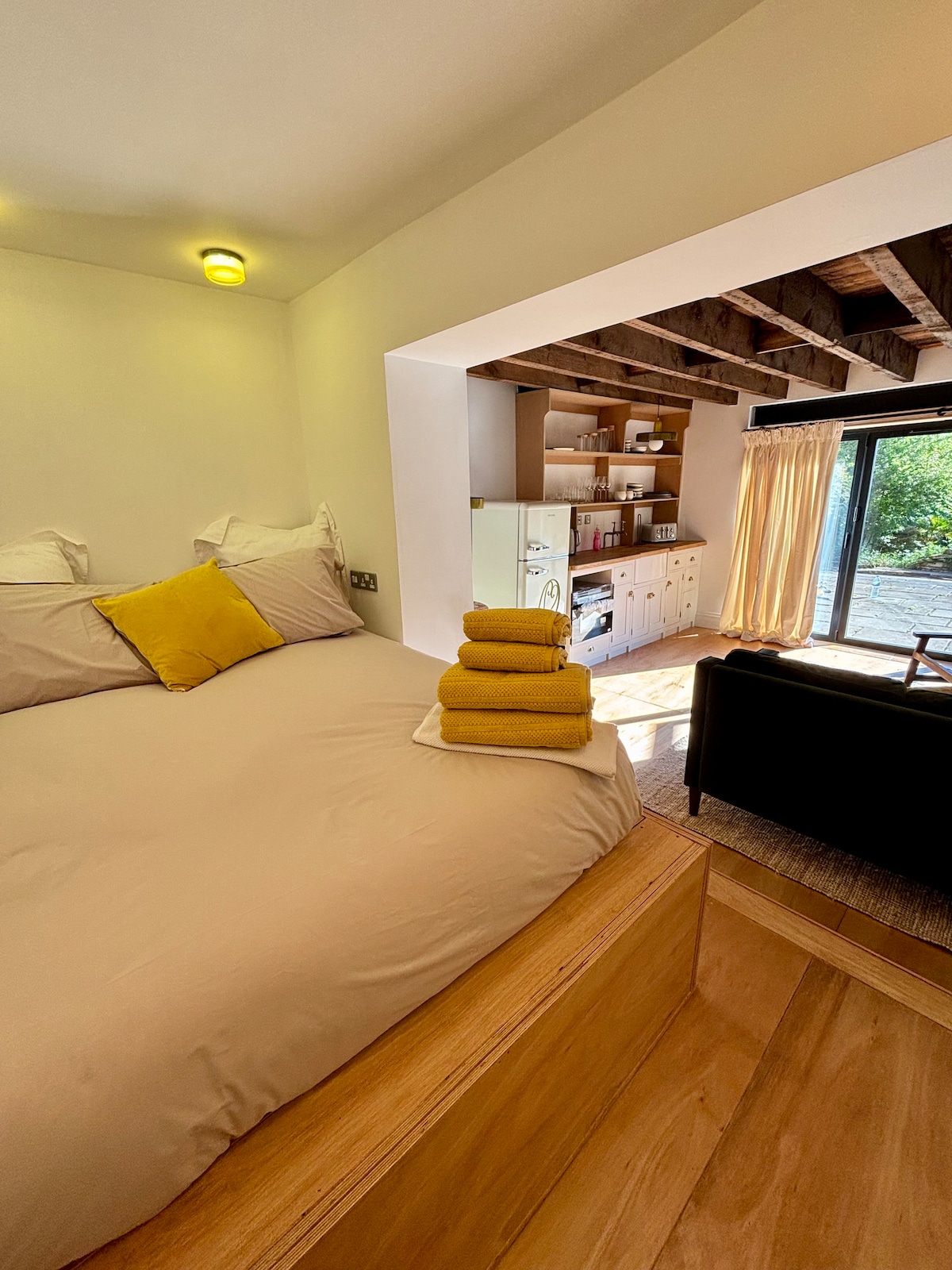사랑스러운 시골 전망을 감상할 수 있는 남향 발코니에서 미르필드에서 휴식을 취하세요. 킹사이즈 침대가 있는 독립형 1베드룸 별채 + 휴대용 에어컨 장치/선풍기, 소파 베드, 여분의 침구, 세탁기, 건조기, 와이파이가 있는 별도의 라운지, 아름다운 강과 운하 산책로, 팜샵 또는 현지 번화가까지 도보로 15분 거리. 주인은 코커 스패니얼 2마리를 키우고 있으니 손님들이 예의 바른 반려동물 한 마리를 휴가에 데려오는 것도 신경 쓰지 마세요. 기본 조식 용품도 제공됩니다.