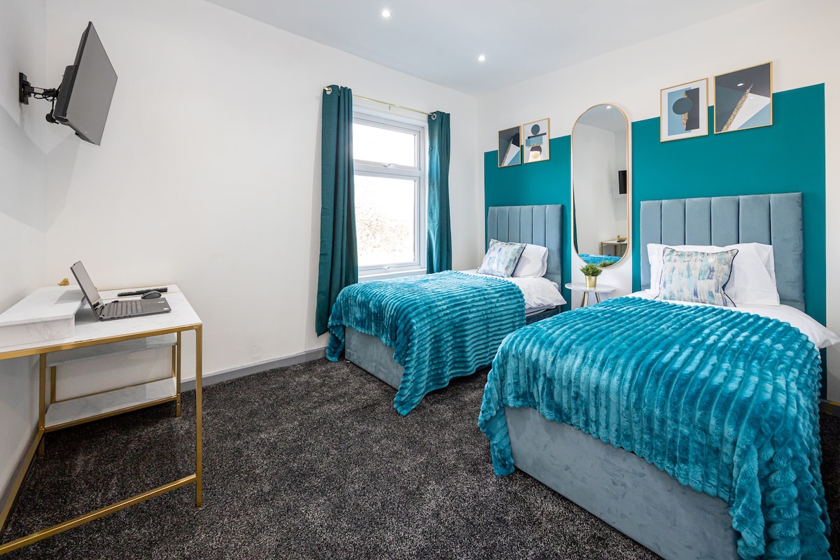 ✨ Spacious 4-Bedroom Suite in Blackpool Town Centre – Sleeps 19 ✨ Approximately a 10-minute walk from the iconic Blackpool Tower and the Winter Gardens, both situated in the town centre. The seafront is also within easy reach, offering a variety of local amenities such as restaurants and shops, making it an ideal location for families, contractors, and anyone looking to book a stay.