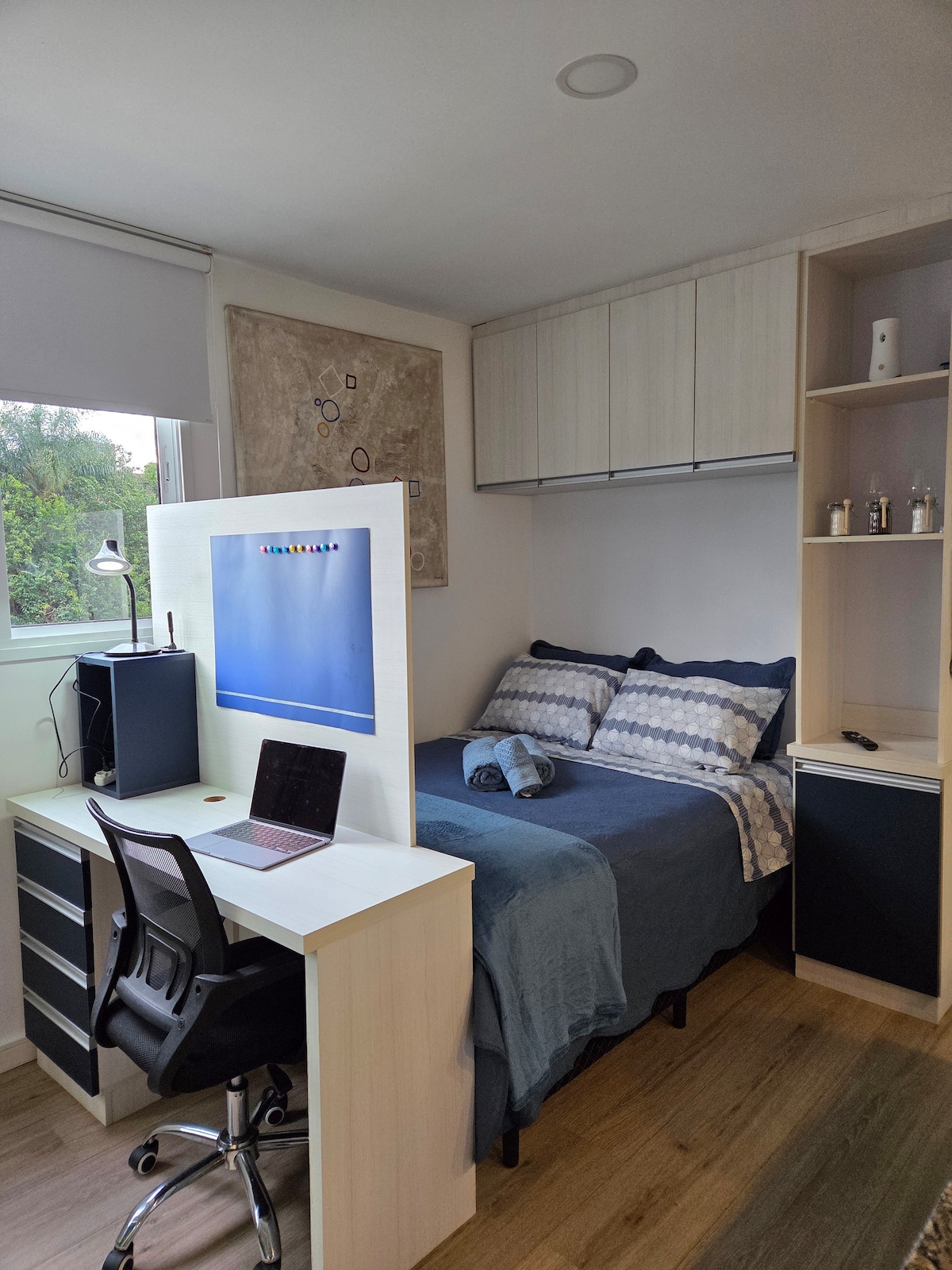 저희는 귀하가 쿠리치바에서 기억에 남는 경험을 하실 수 있도록 이 매력적인 공간을 만들었습니다. 보타닉 가든 공원 입구에 위치하고 있으며 UFPR 및 FIEP에서 가깝습니다. 최대 2명까지 편안하게 수용할 수 있습니다. 아늑한 분위기: - 에어컨 냉난방 - 통합된 침실, 거실 및 주방 - 킹사이즈 침대 - 스마트 TV - 와이파이 - 다리미판/다리미 - 헤어 드라이어 - 미니바 - 금고 - 침구, 수건, 베개 및 담요 - 스튜디오 옆 닫힌 부지의 주차 공간