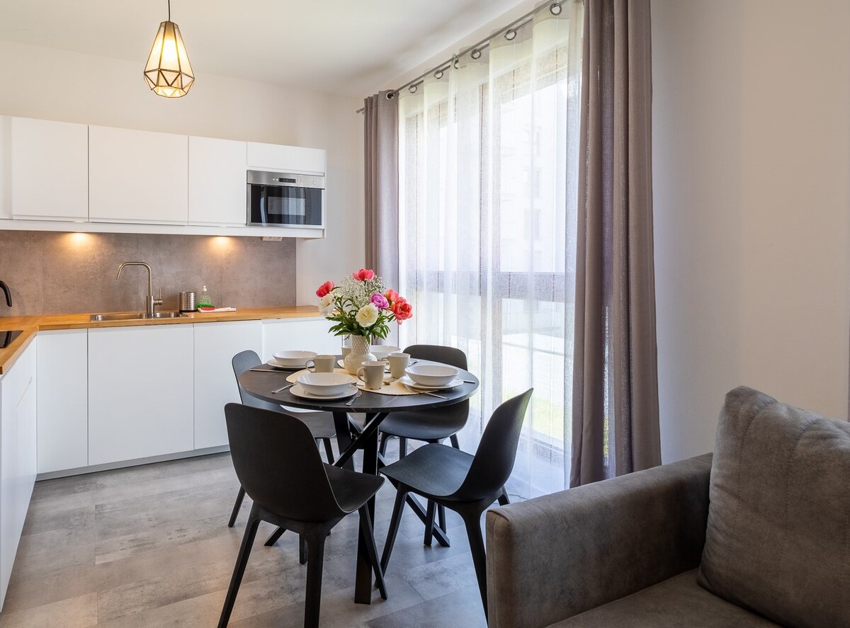 현대적인 시설이 옛 시대의 아파트와 어떻게 조화를 이루는지 감상해보세요. 햇살이 가득한 전면 객실에서는 녹음이 우거진 동네가 내려다보이며, 화분과 식물 프린트가 자연을 주제로 실내 공간을 꾸미고 있습니다. 캐비닛에 우아한 식기류가 진열되어 있습니다. 이 아파트는 브로츠와프 도심 근처에 있습니다. 트램으로 10분 또는 중심지(아르카디)까지 도보로 25분 거리입니다. 트램 정류장이 가깝지만 놀라울 정도로 조용하고 평화로운 숙소입니다. 모퉁이만 돌면 특이한 현지 카페가 있습니다.