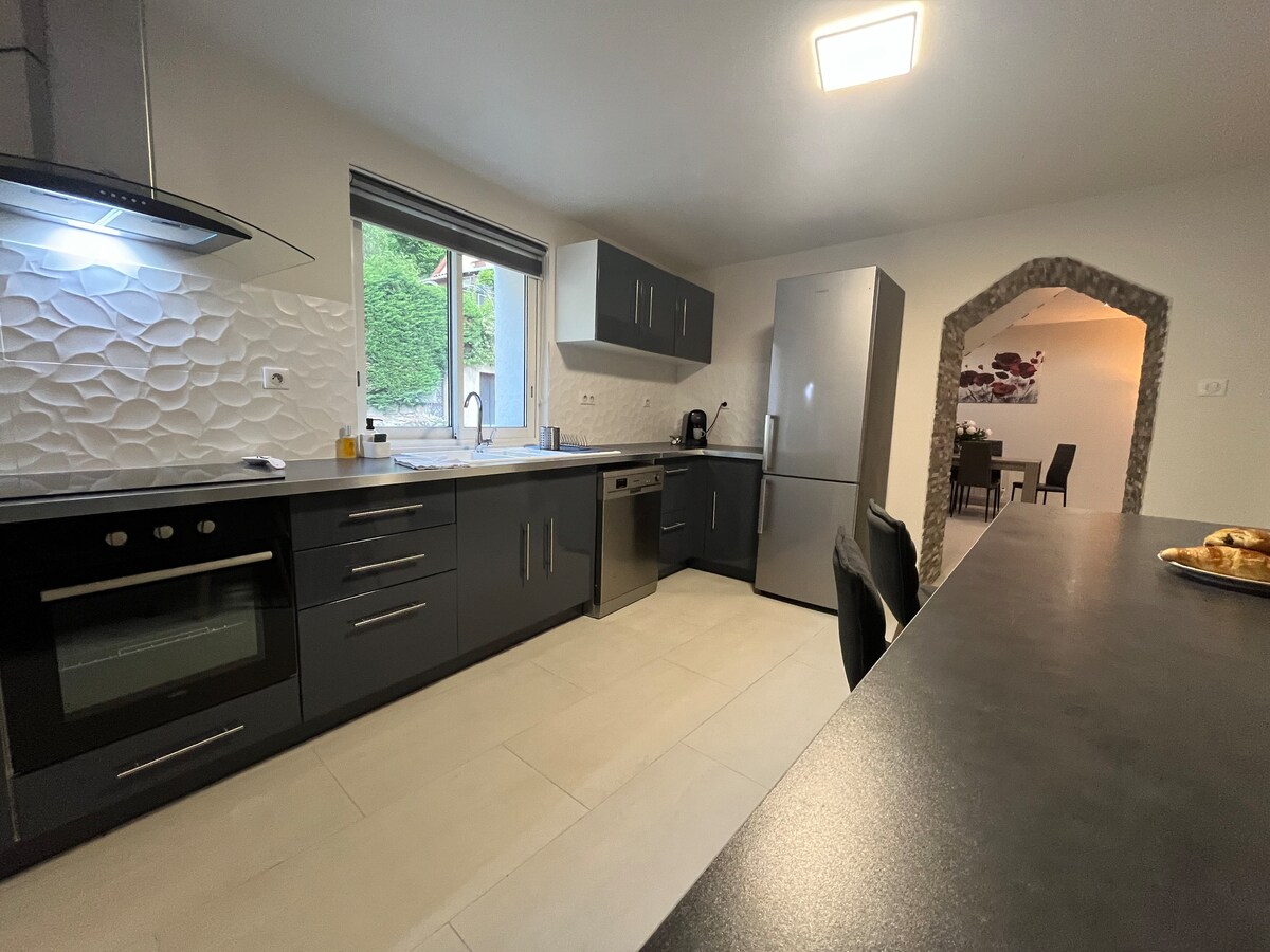 이 숙소는 베유 고원(크로스컨트리 스키 및 하이킹) 아래 매우 조용한 지역에 위치해 있으며, 레 카반 중심지(슈퍼마켓, 베이커리, 약국, 레스토랑...)에서 500m, 파 드 라 카스에서 40km, 악스 레 테르므(스키 리조트 및 온천)에서 15km 거리에 있습니다. 저희가 새로 리모델링한 집입니다. 1층에는 주방이 완비된 넓은 개방형 공간이 있고, 2층에는 키에 드 신사의 전망을 감상할 수 있는 예쁜 침실 2개와 새로운 욕실이 있습니다.