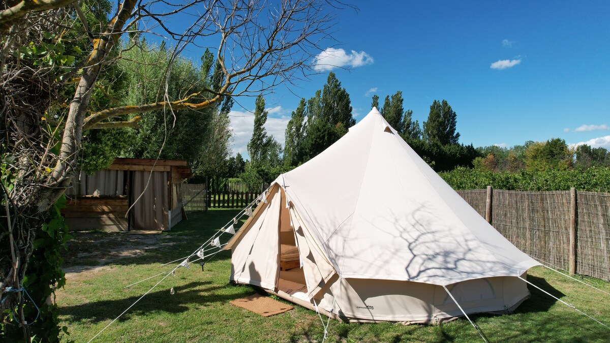 농장 부지의 작은 농장 캠핑장에서 참나무 그늘에 이누이트 텐트를 제공합니다. 루베론을 바라보며 독특하고 조용한 경험을 즐겨보세요. 텐트에는 4명까지 묵을 수 있는 새로운 침구가 구비되어 있습니다 (더블침대 140x200 1개, 싱글침대 90x200 2개). 마음대로 이용하실 수 있습니다: - 개인 식사 공간 - 전기 콘센트 및 충전식 태양광 램프 - 침대 린넨 (샤워 타월 불포함 ) - 공용 공간 (냉장고, 바베큐, 전기 호브, 작은 접시) 에서 식사를 준비하기에 충분합니다. 화장실과 샤워 시설 (온수) 은 동일하게 공유해야 합니다.