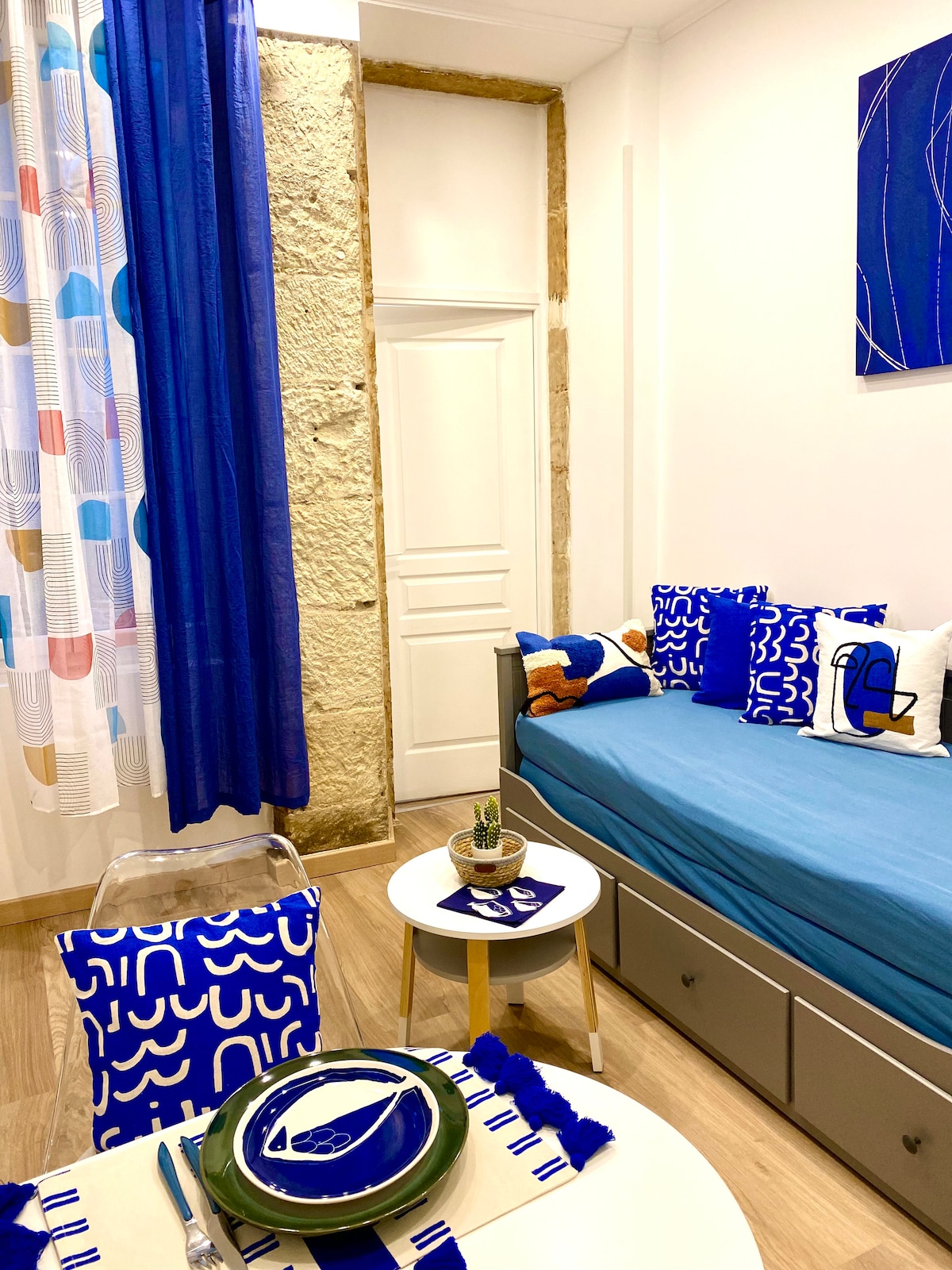 Ce charmant studio de 17 m2, situé juste à côté de la Tour Mataguerre . Avec sa déco dans les tons de bleu et blanc. Rénové à neuf et bien équipé. Composé d’un canapé convertible avec un matelas confortable, ainsi que d’une jolie salle de bain et d’un balcon commun. Bon séjour dans notre ville historique
